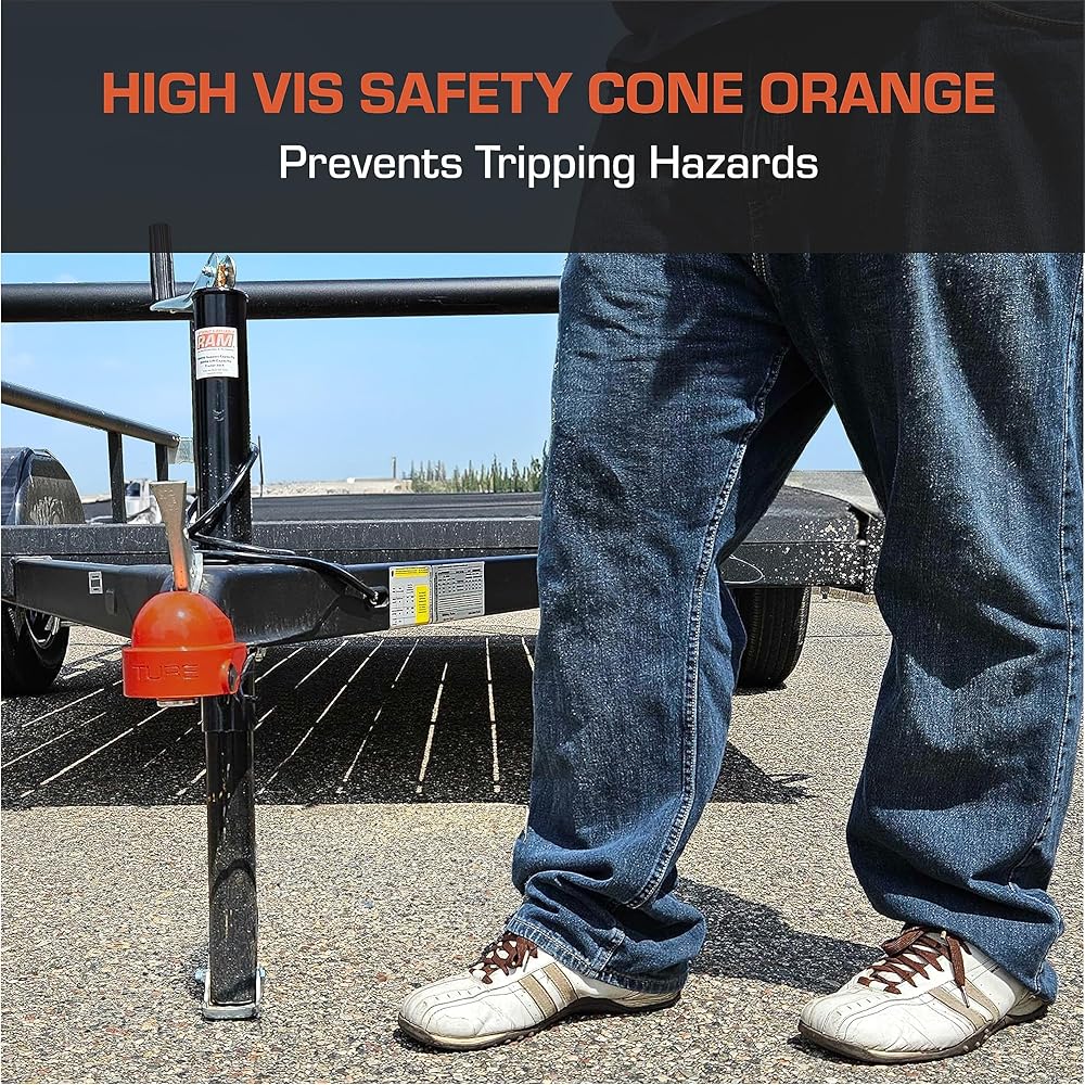 - لون برتقالي مخروطي عالي الأمان - يمنع مخاطر التعثر والسيقان المكسورة من خلال جعل لسان المقطورة مميزًا.
