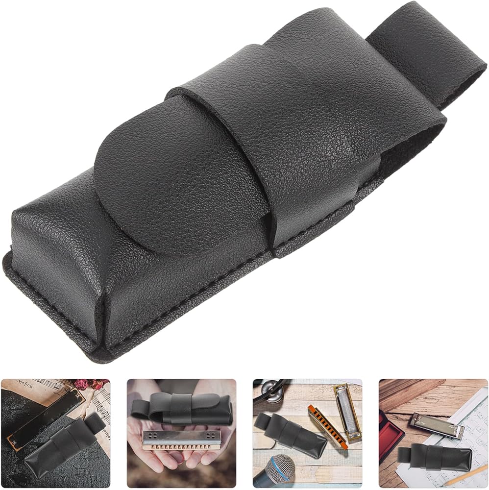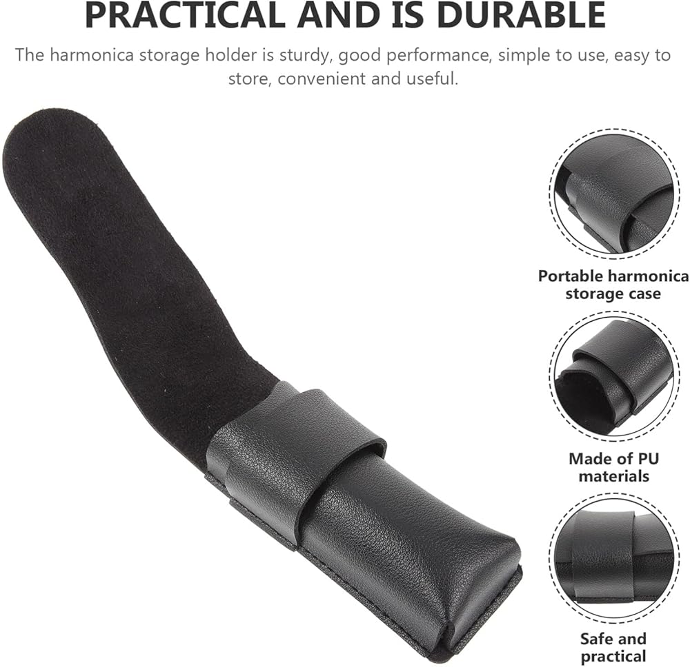 ملحقات الآلات المحمولة هارمونيكا هارمونيكا - حافظة جلدية هارمونيكا للتخزين، أغطية هارمونيكا من البولي يوريثان، ملحقات الآلات المحمولة للعشاق باللون الأسود والأزرق