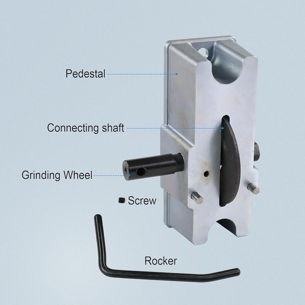 How to use: Fix the piston ring on the pin, shake the handle and file the piston ring with grinding wheel to ensure the correct clearance of the piston ring.