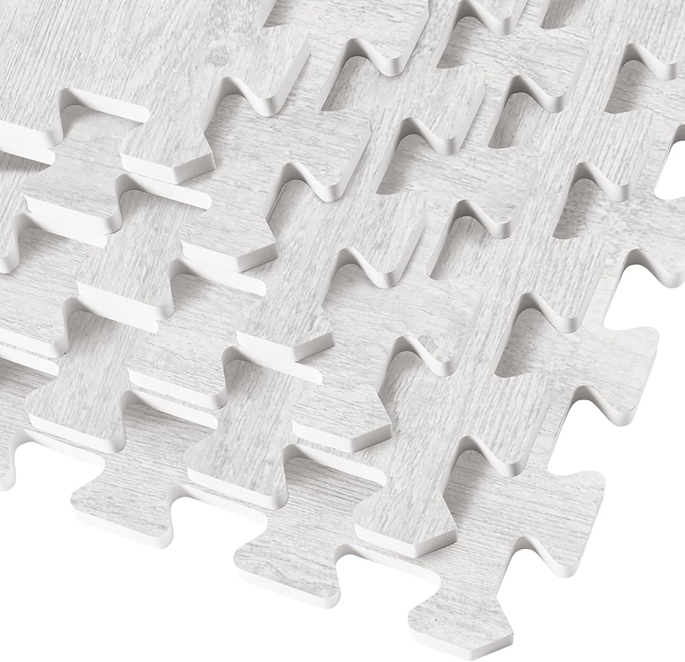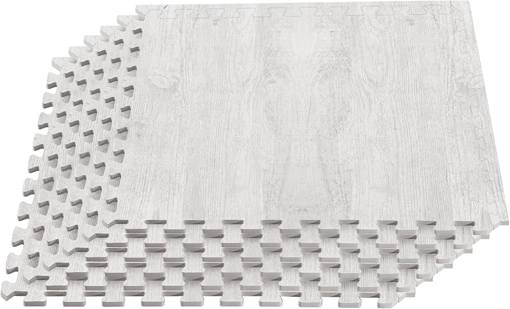 حل أرضيات منمق - بلاط الأرضيات الرغوي الخشبي الفاخر لأرضيات الغابة يأتي في بلاط إسفنجي EVA متشابك، متوفر بسمك 24 بوصة × 24 بوصة × 3/8 بوصة، مع مظهر حبيبات خشبية للحصول على مظهر أنيق في أي غرفة.