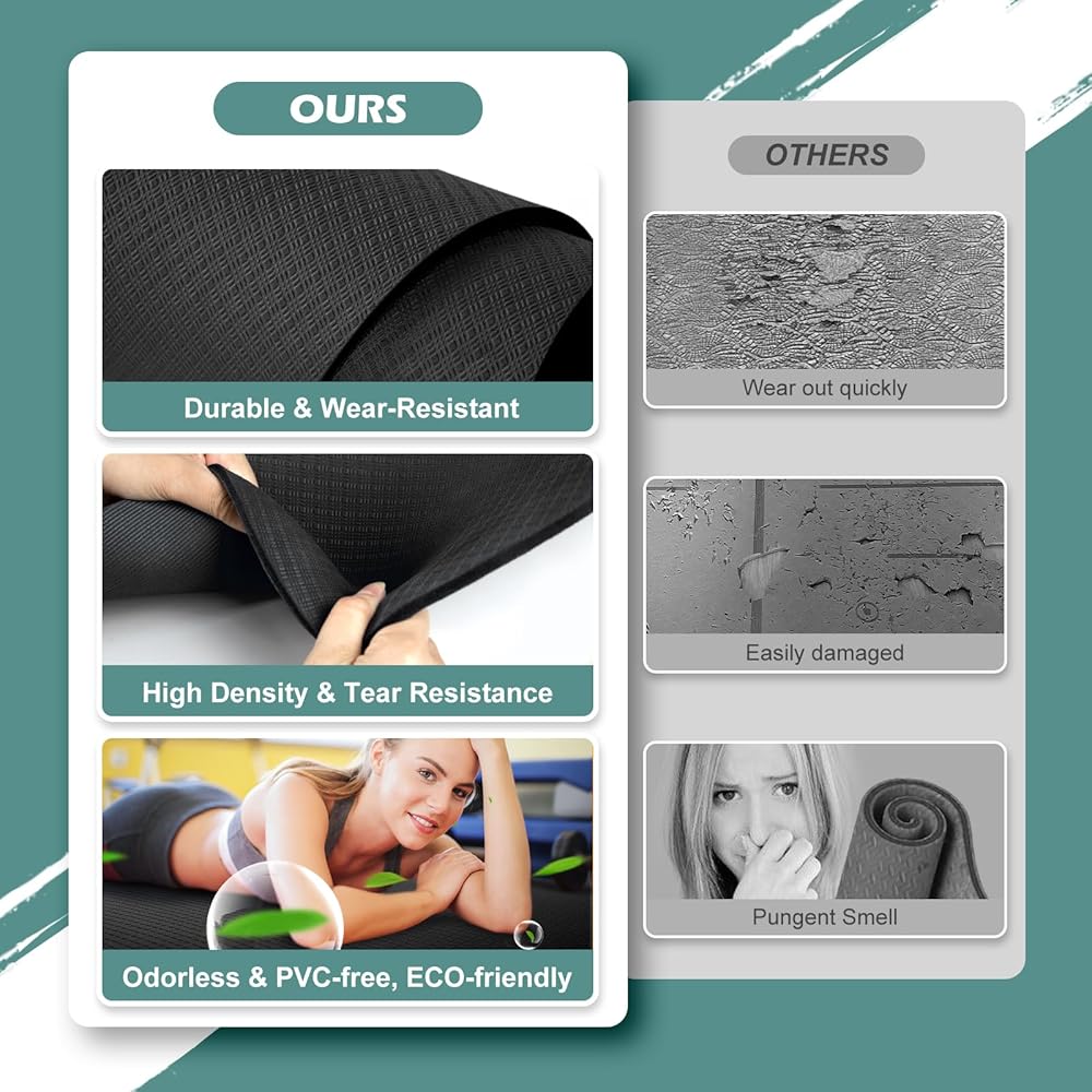 مانع للانزلاق وممتص للصدمات: يتميز جوجومات بتصميم سطحي مزخرف على الوجهين يمكن أن يزيد الاحتكاك لمنع الانزلاق، وسوف تمتص المرونة الكافية التأثير على ركبتيك ومفاصلك، مما يمنع الإصابات الشائعة التي يمكن أن تحدث أثناء التدريبات عالية التأثير.
