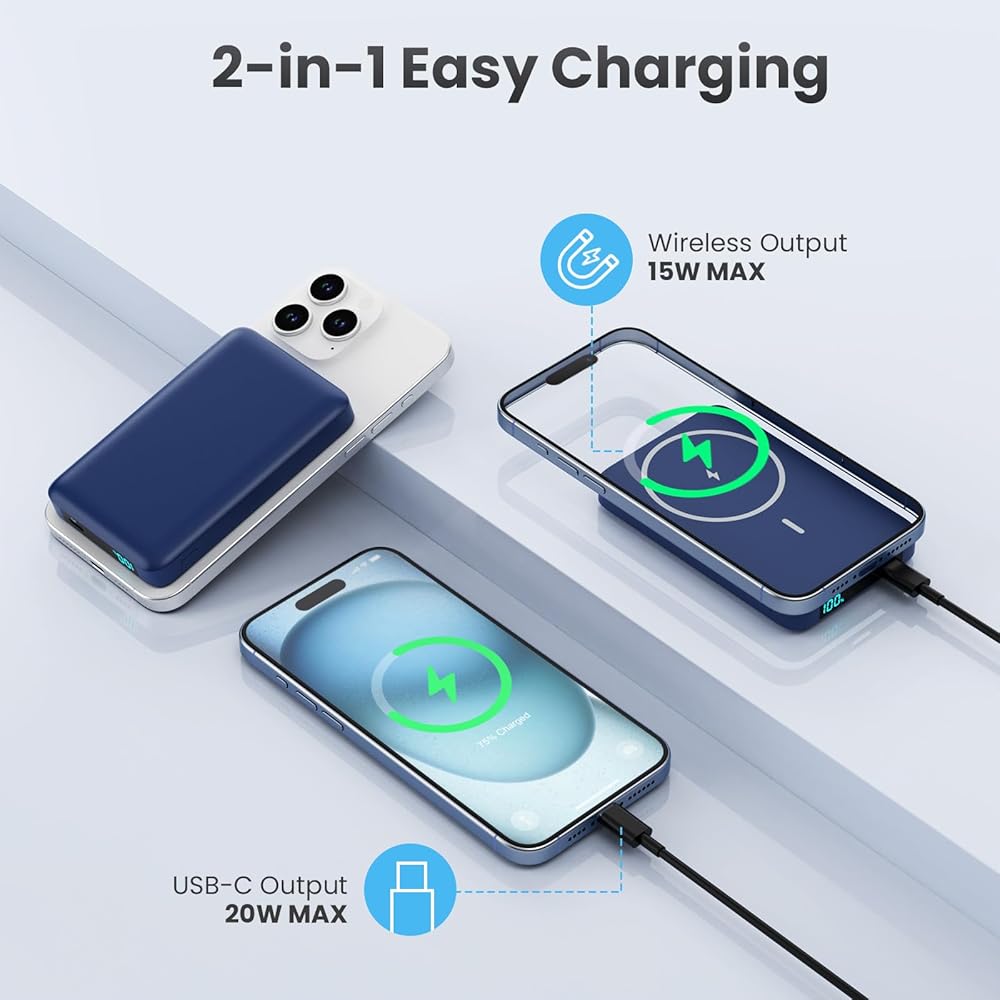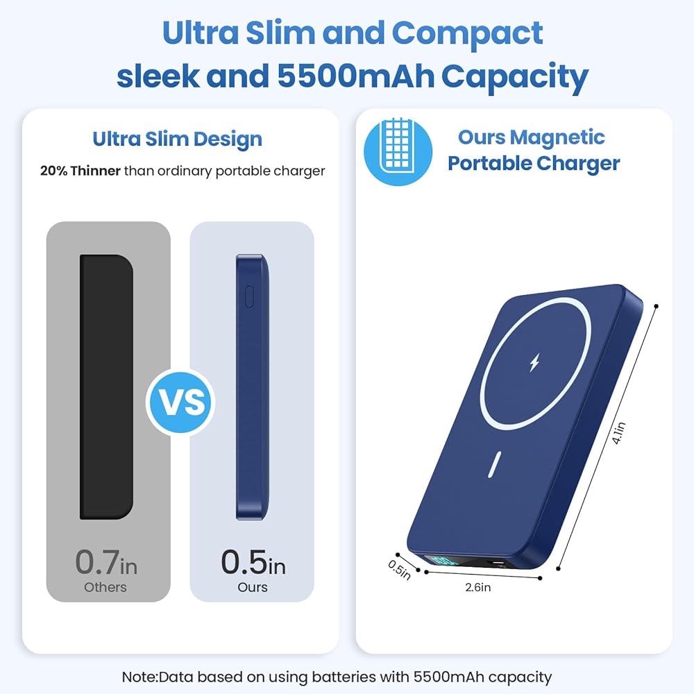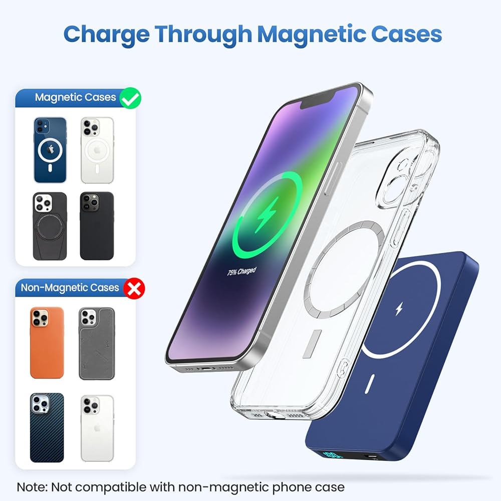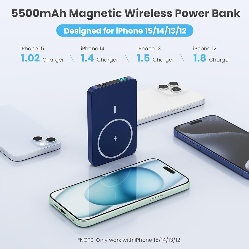 【مصممة لسلسلة iPhone 15/14/13/12】مجموعة بطاريات Magsafe الخاصة بنا متوافقة مع iPhone15، iPhone15 plus، iPhone15 Pro، iPhone15 Pro max، IPhone 14، iPhone 14 Plus، iPhone14 Pro، iPhone 14 Pro Max، iPhone 13، iPhone 13 ميني، آيفون 13 برو، آيفون 13 برو ماكس، آيفون 12، آيفون 12 ميني، آيفون 12 برو، وآيفون 12 برو ماكس. وغيرها من الهواتف ذات الحالات المغناطيسية. يدعم أيضًا الهواتف/الأجهزة الأخرى ذات الشحن اللاسلكي، ولكن بدون الميزة المغناطيسية. ملحوظة: نوصي بالشحن باستخدام حافظة هاتف MagSafe أو بدون حافظات.