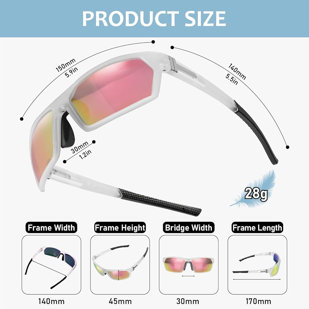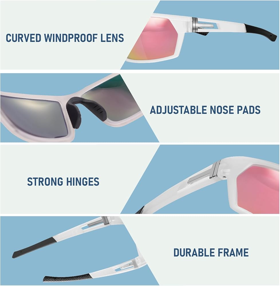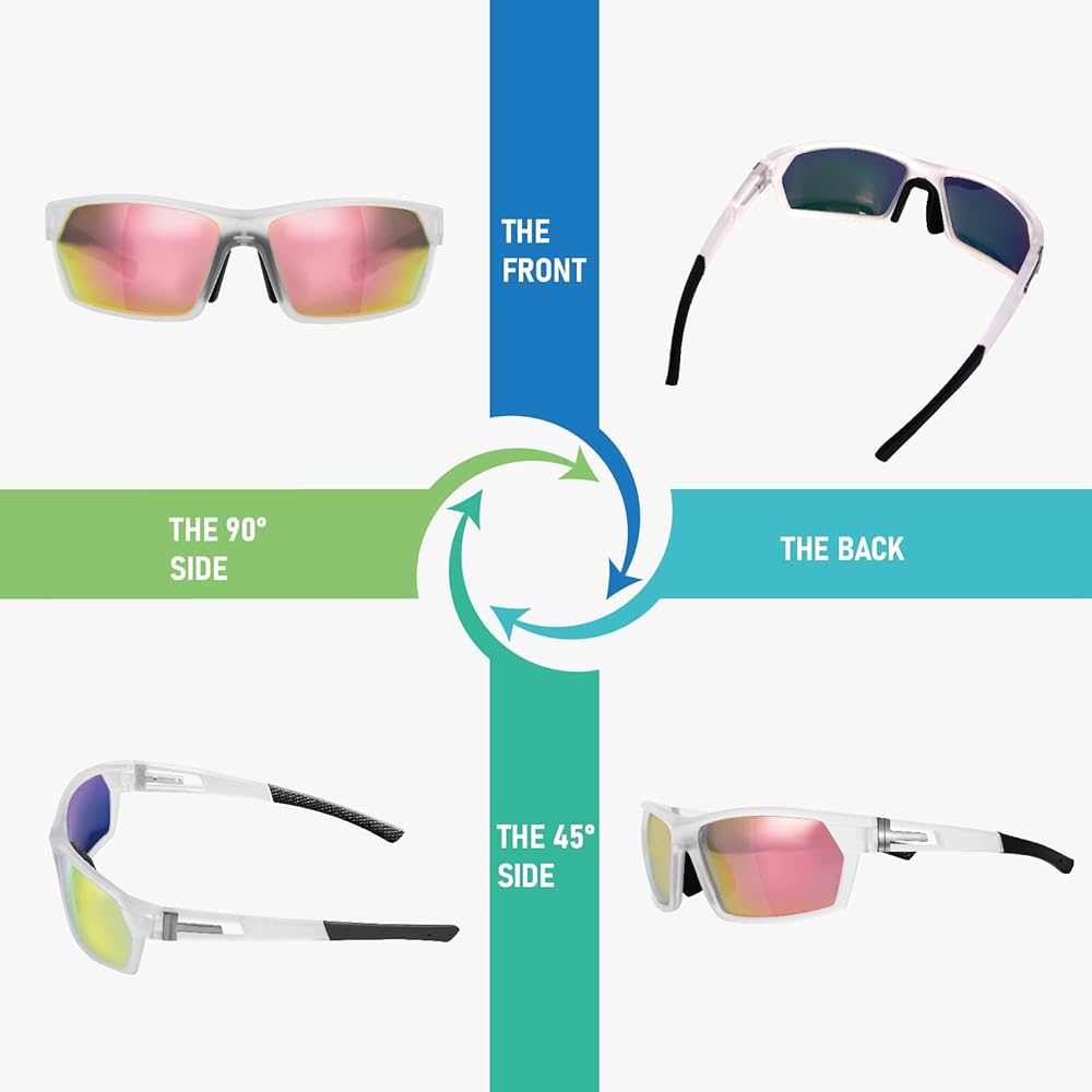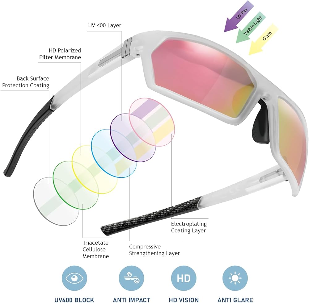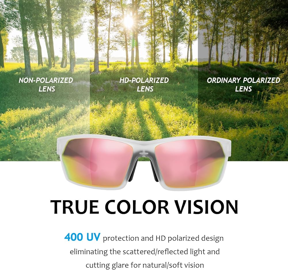 [عدسات مستقطبة عالية الدقة]: تتميز نظارات Hoedia الرياضية بعدسات مستقطبة TAC تقضي على الضوء المتناثر/المنعكس والوهج للحصول على رؤية طبيعية وناعمة.