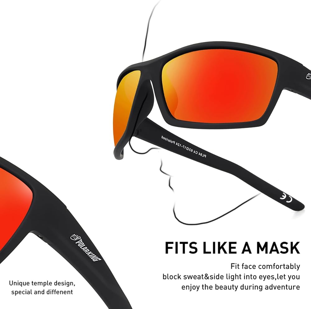 1.Superior protection & comfort The temple full wrap design blocks side-light offering maximum coverage which makes this style perfect for driving and sports activities such as skiing, biking, running, boating, fishing, and golfing.