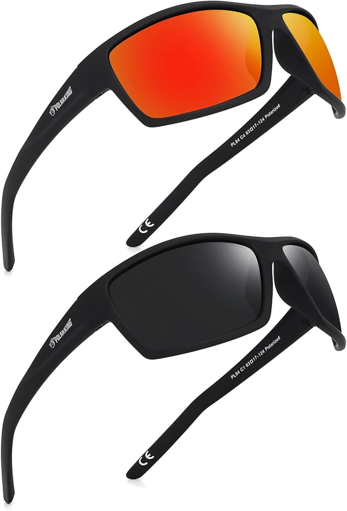 • EXCELLENT POLARIZED LENS:100% Full Spectrum UV protection against the sun's harmful rays. Polarized Lens delivers high contrast, crisp definition, and peak visual acuity. Not only perfect for your weekend adventures, but also an excellent choice for your weekday commute.2 PACK polarized men sunglasses women sport sun glasses dark lens UV blocking for male female UV protection goggles.