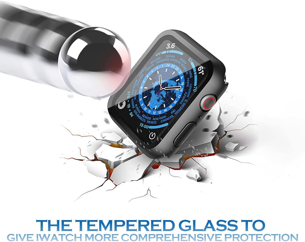 Nozza[عبوة من قطعتين] حافظة حماية شاشة لساعة Apple Series 7 مقاس 41 ملم، حافظة حماية كاملة التغطية لساعة iWatch Series 7 مع زجاج مقسى عالي الدقة، مصد لساعة Apple Watch Series 7 (41 ملم، أسود + أسود)