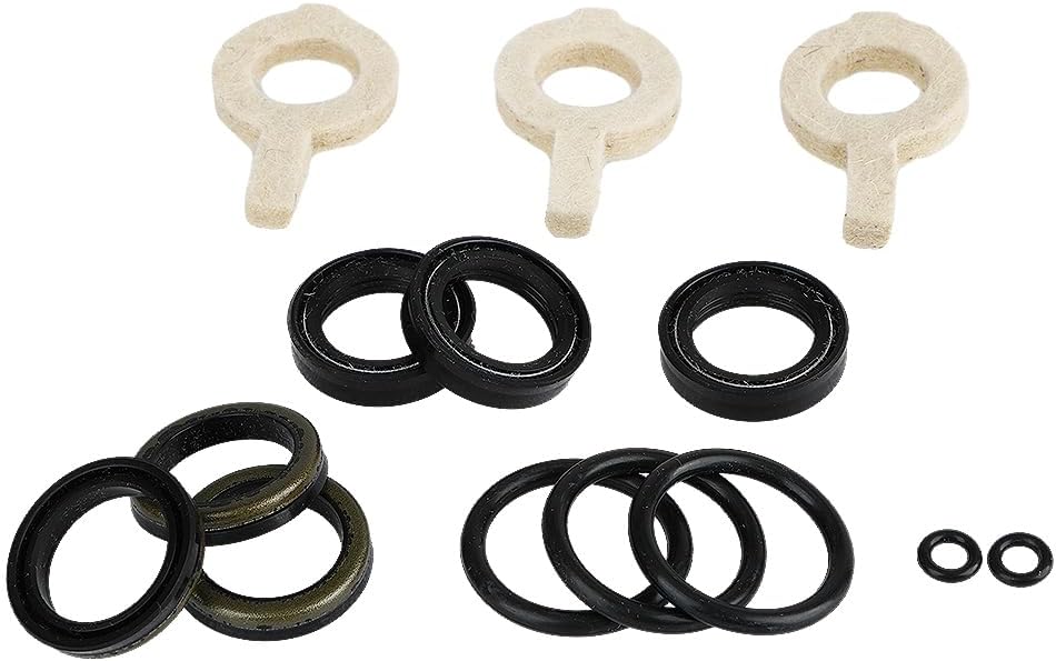 يأتي مع 3 قطع #43307 أختام الضغط العالي مع ختم S؛ 3 قطع #43305 أختام منخفضة الضغط مع ختم S-Spg؛ 3 قطع #14200 حلقات دائرية؛ 3 قطع #17399 حلقات دائرية للمكبس؛ 3 قطع #43302 فتائل ذات عروة طويلة