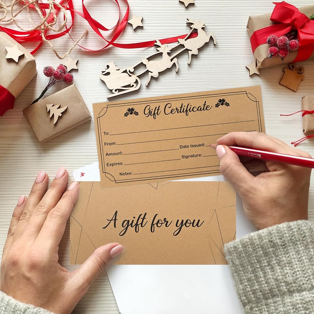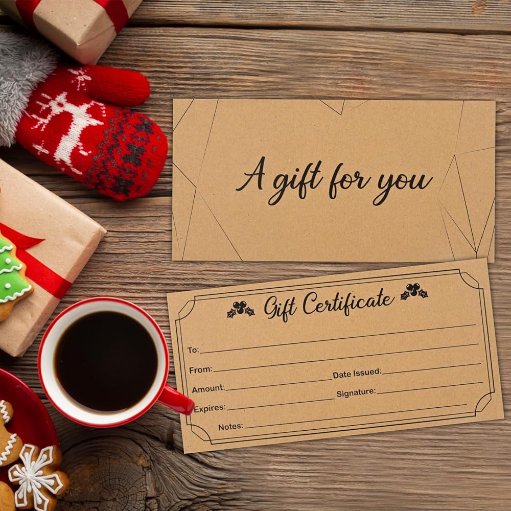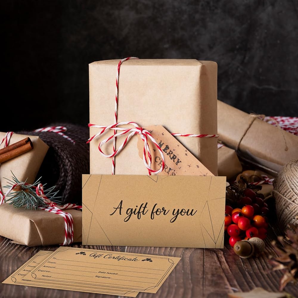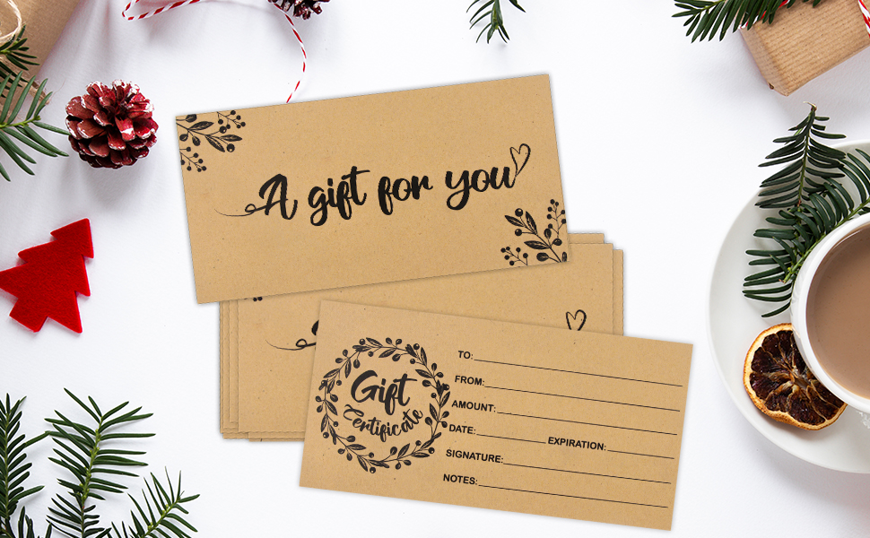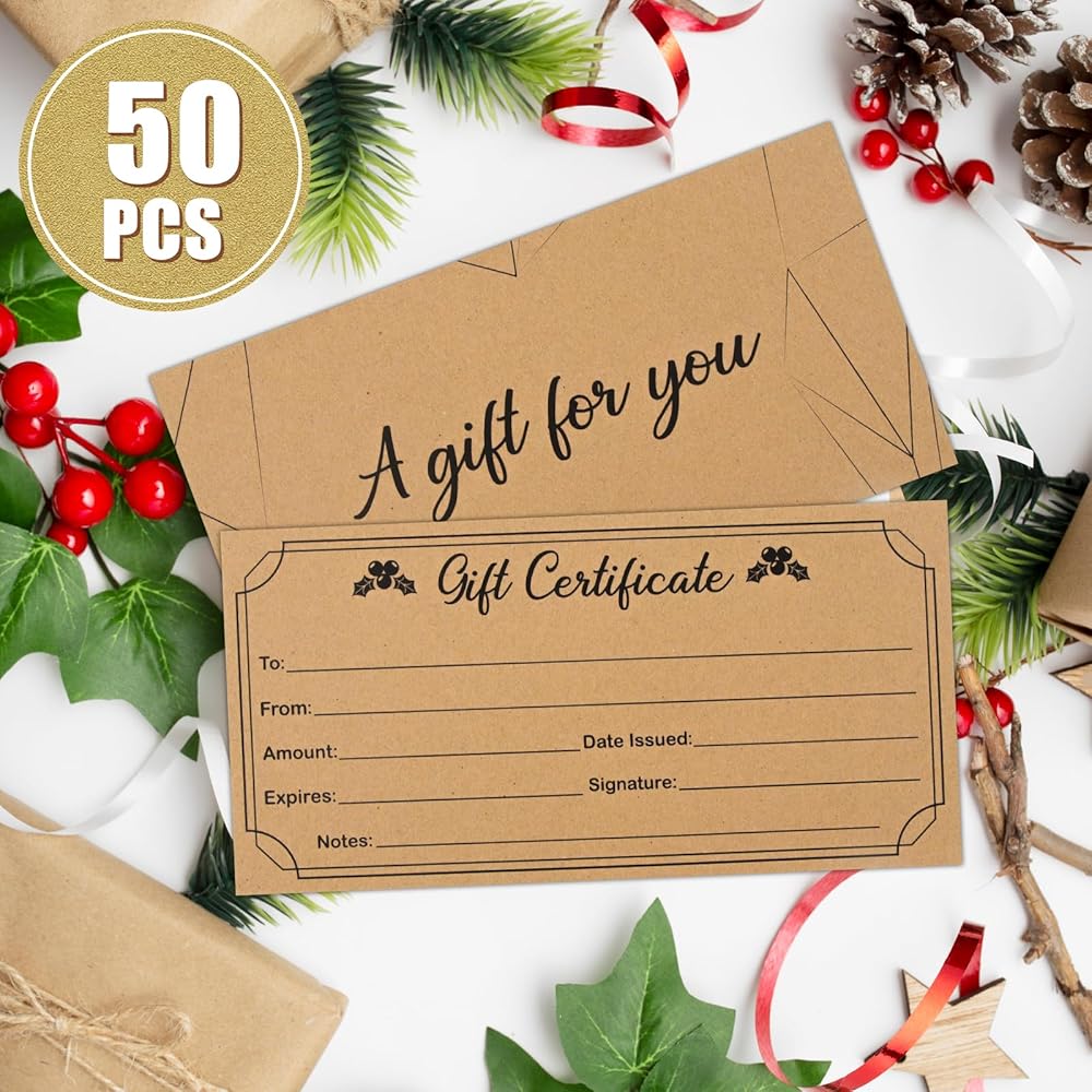 50 قطعة من شهادات الهدايا الريفية الفارغة للأعمال الحرفية وبطاقات شهادات الهدايا للأعمال التجارية الصغيرة وصالونات التجميل والمطاعم وقسائم عيد الميلاد للعملاء (النمط 1)