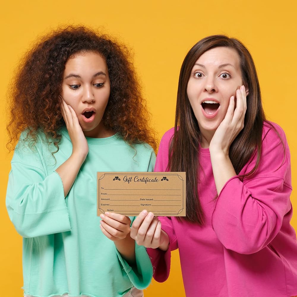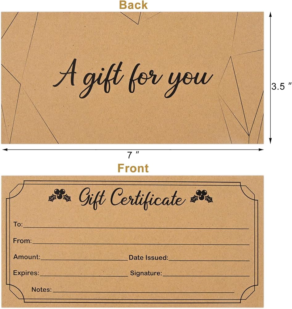 • 🚀 ما الذي ستحصل عليه. 50 قطعة من شهادات الهدايا الفارغة للأعمال، مقاس كل بطاقة هدايا 8.89 سم × 17.78 سم. كمية كافية سوف تلبي احتياجاتك المختلفة.