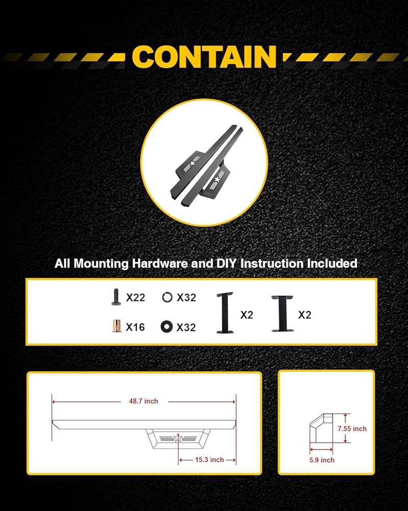 السلامة: مداس أوسع مقاس 5 بوصات مع لمسة نهائية مطلية بمسحوق مضاد للصدأ يوفر خطوة أكثر أمانًا وراحة، خاصة للأطفال وكبار السن، مقارنة باللوحات الأخرى مقاس 4.8 بوصة