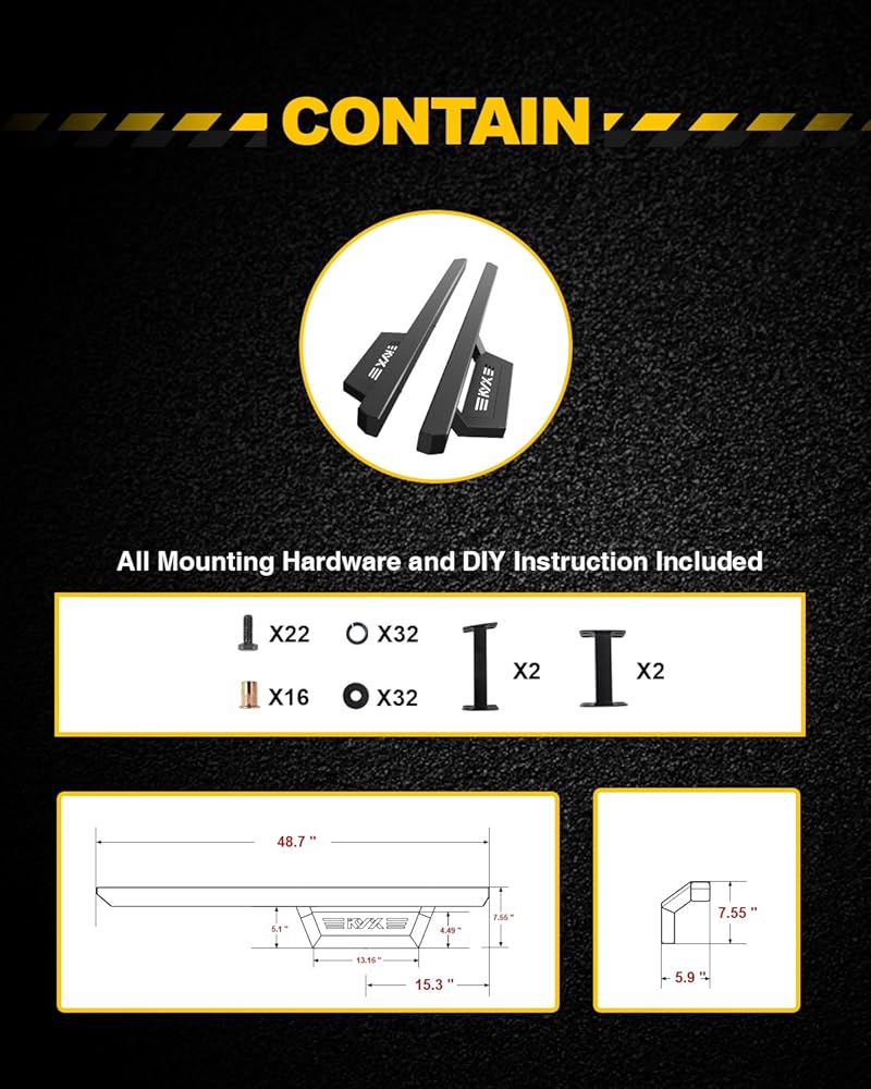 الملاءمة: خطوات KYX الجانبية مناسبة بدقة لـ 2019 2020 2021 2022 2023 Jeep Gladiator JT 4 أبواب. تأكد من تأكيد التوافق قبل الشراء