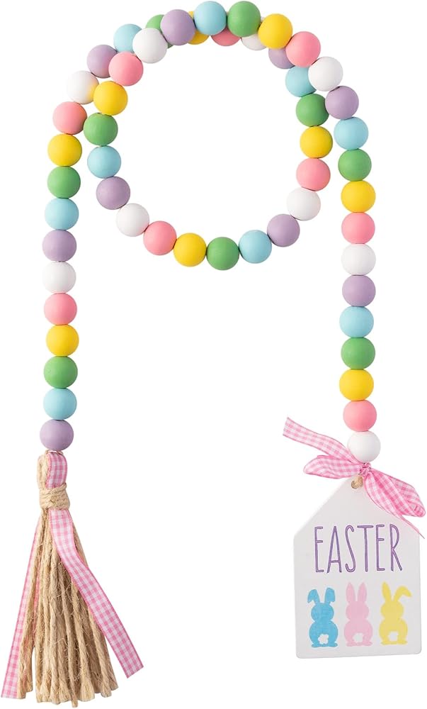 ديكورات خلفية عيد الفصح - علقها على الجدران، وعمود السرير، والأرفف، والمرايا، وجانب السرير، والنافذة وما إلى ذلك. يمكن أن يكون ديكورًا رائعًا لإضفاء لمسة ساحرة على الحائط ومنزلك مع شماعة إكليل الخرز الخشبية هذه على شكل أرنب عيد الفصح.