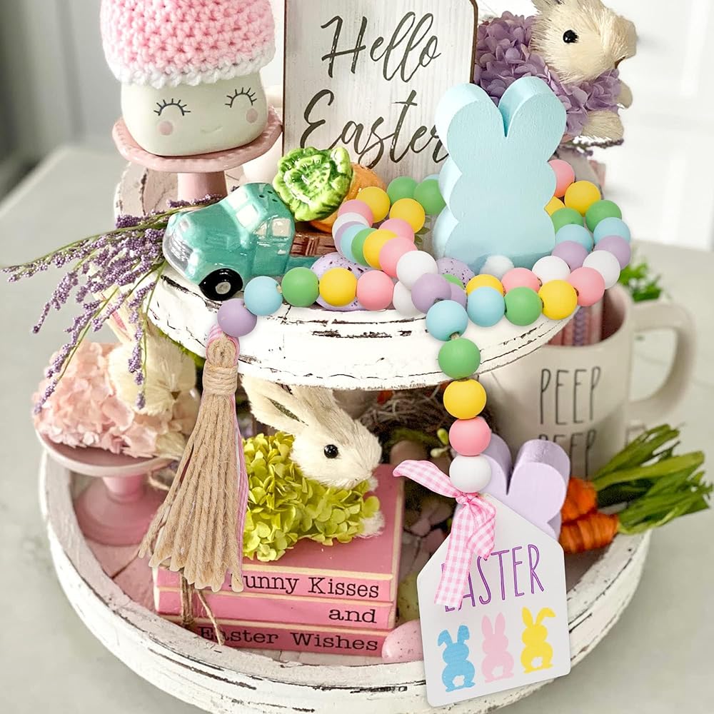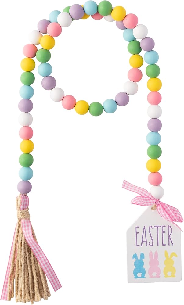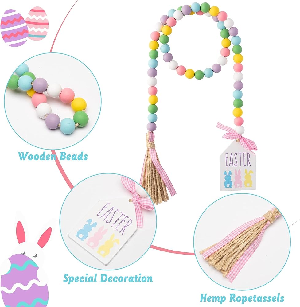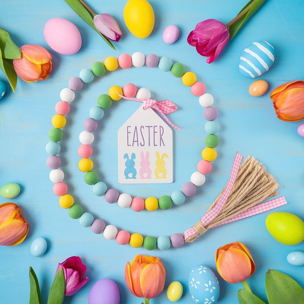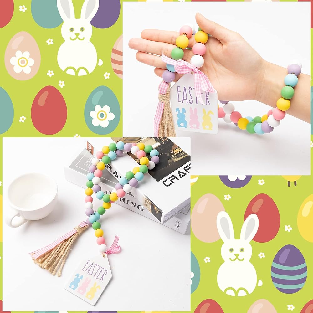 تصميم عيد الفصح -- هذا الجدار المصنوع من خرزات عيد الفصح الخشبية المعلقة باللون الأرجواني الفاتح والأزرق السماوي والأخضر العشبي والأصفر الفاتح والوردي والأبيض إجمالي 6 ألوان، أنيق وعالمي. مناسبة لجميع أنواع الديكورات الغريبة على طراز عيد الفصح لإضفاء إشراقة على منزلك.