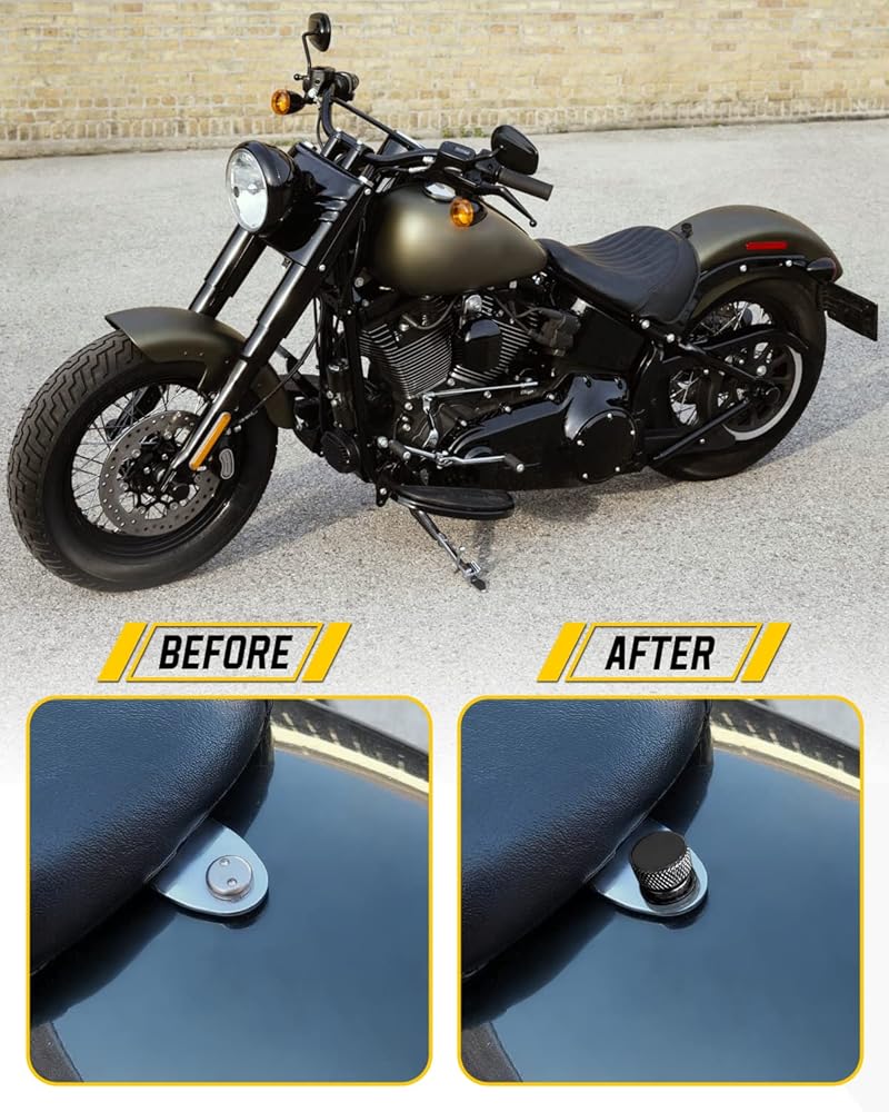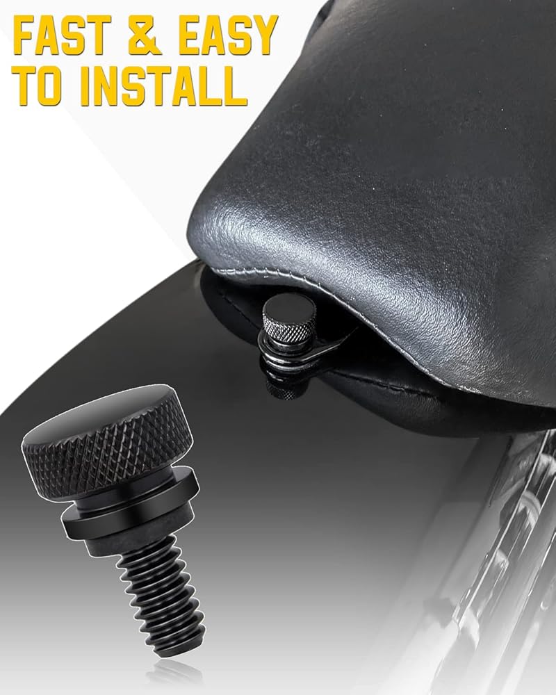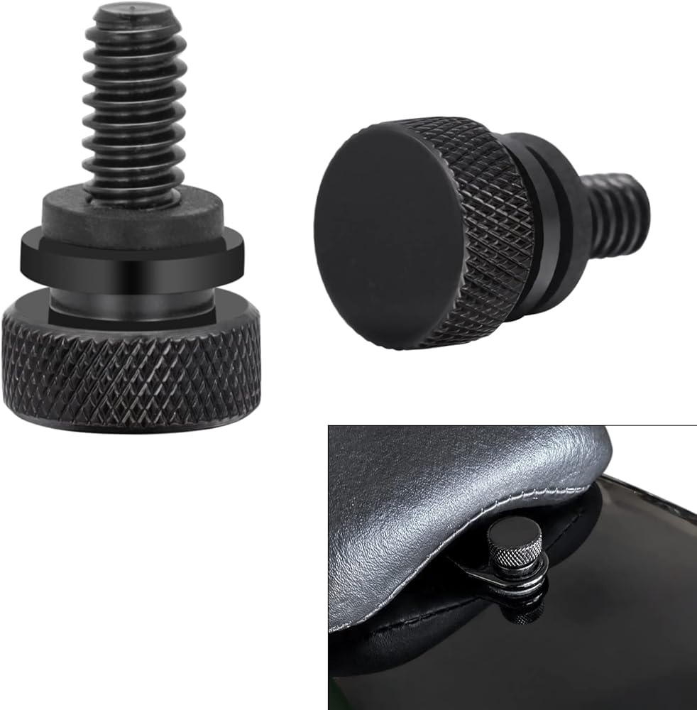 • الإعداد - مسمار مسمار المقعد الأسود متوافق مع Harley 1996-up Sportster وStreet Glide وRoad Glide وWide Glide وStreet Bob وRoad King وFat Bob وSoftail وDyna وUltra Glide ونماذج أخرى بخيط 1/4"-20 .