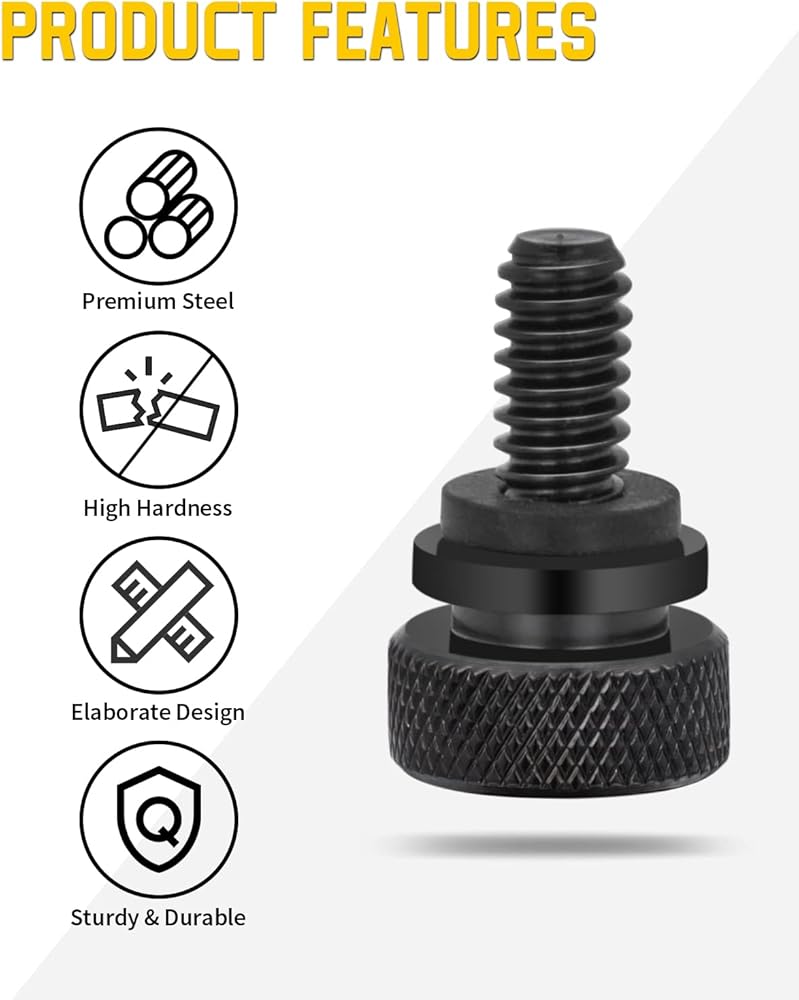 • سهل التركيب - يتميز مسمار المقعد بتصميم جوانب مخرشة مما سيزيد من احتكاك اليد للإمساك بها والإفراج السريع. لن يفلت بسهولة. يتم تركيبه وإزالته بسهولة بدون أدوات، مما يوفر وقت التثبيت.