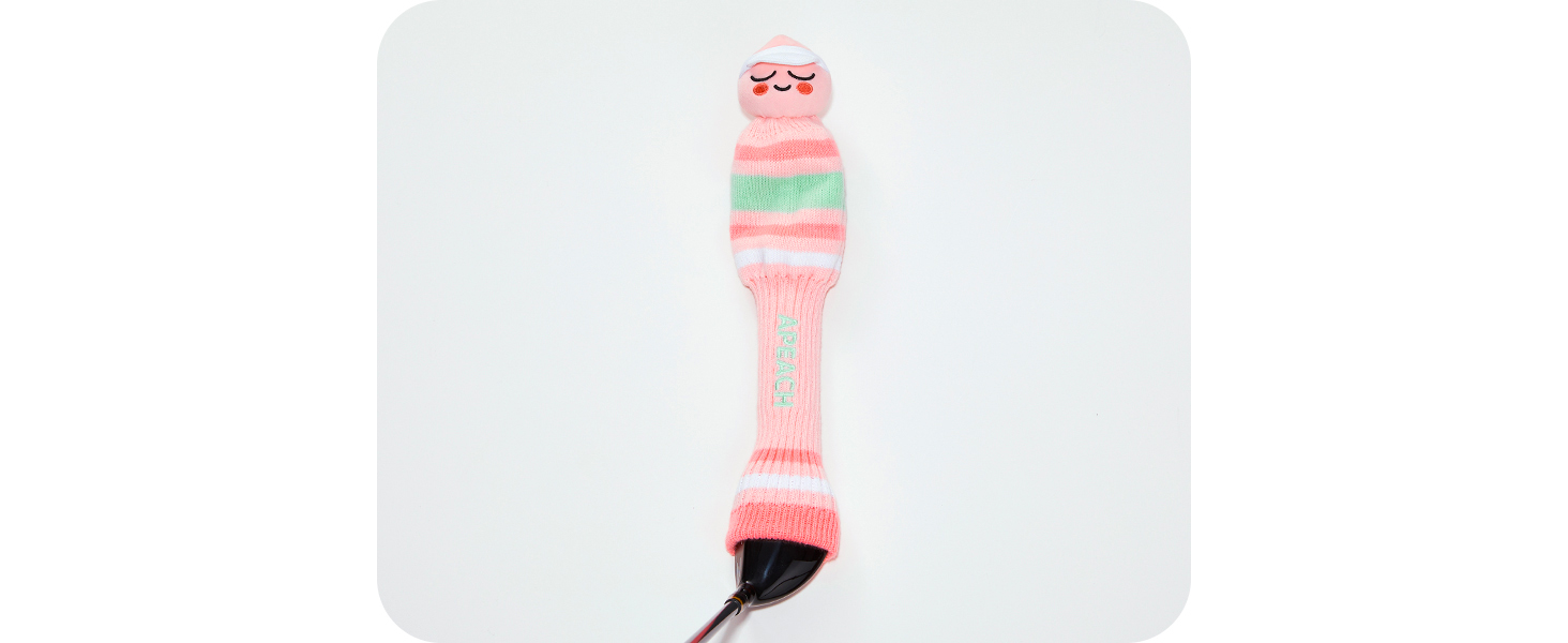 OFFICIAL KAKAO FRIENDS GOLF HEADCOVER: Apeach wearing a sun cap will be cheering you on the field. Cozy stripe pattern matches the soft texture of the cover.