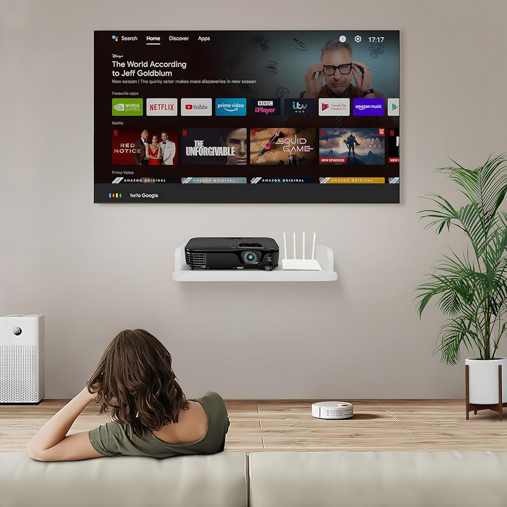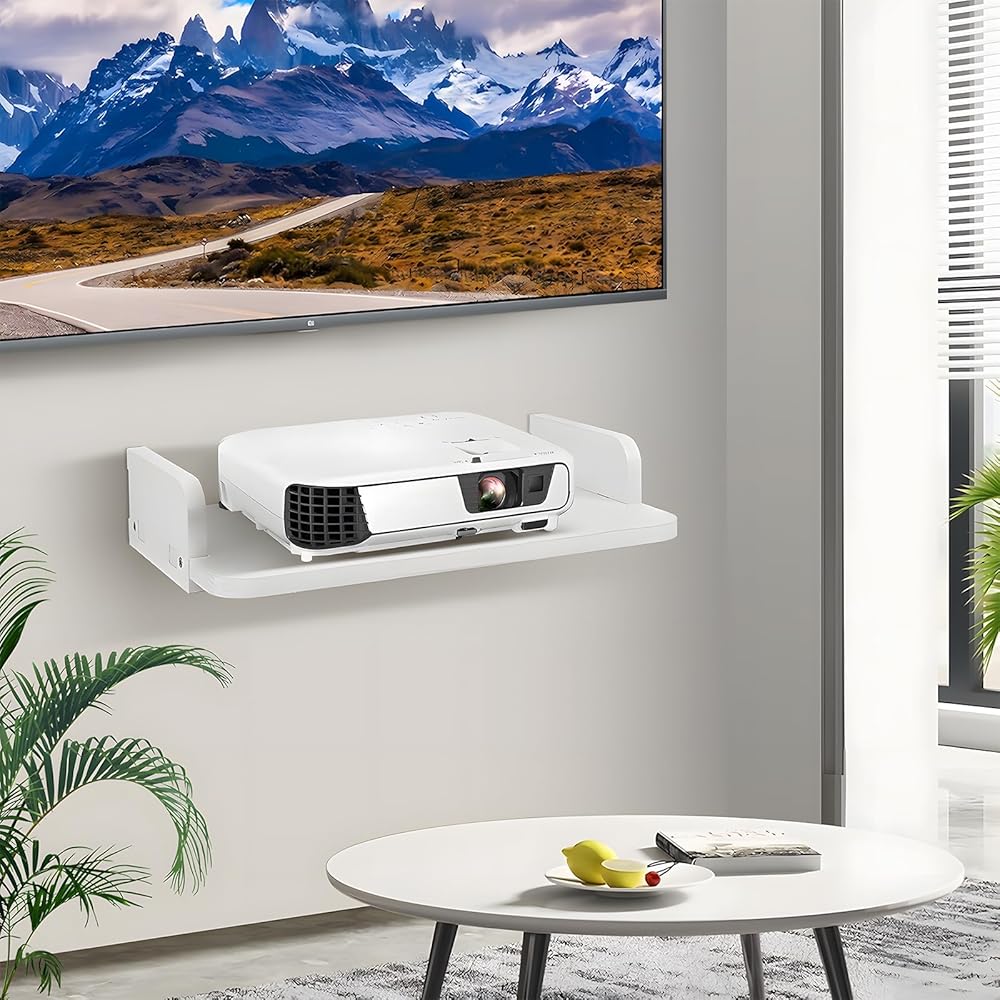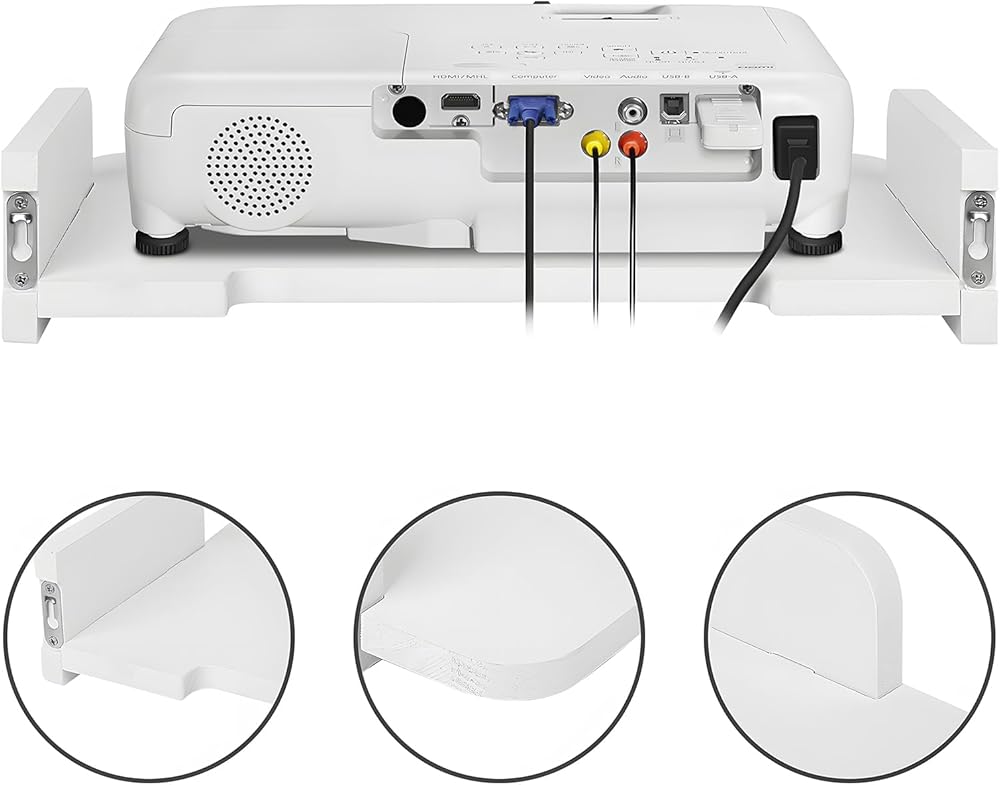 رف جهاز العرض، رف عائم مثبت على جدار جهاز العرض، حامل جهاز العرض، حامل حامل جهاز العرض، حامل جهاز العرض، رف لجهاز Playstation، رف جهاز التوجيه Xbox Series PS5 PS4 من الخشب الصلب