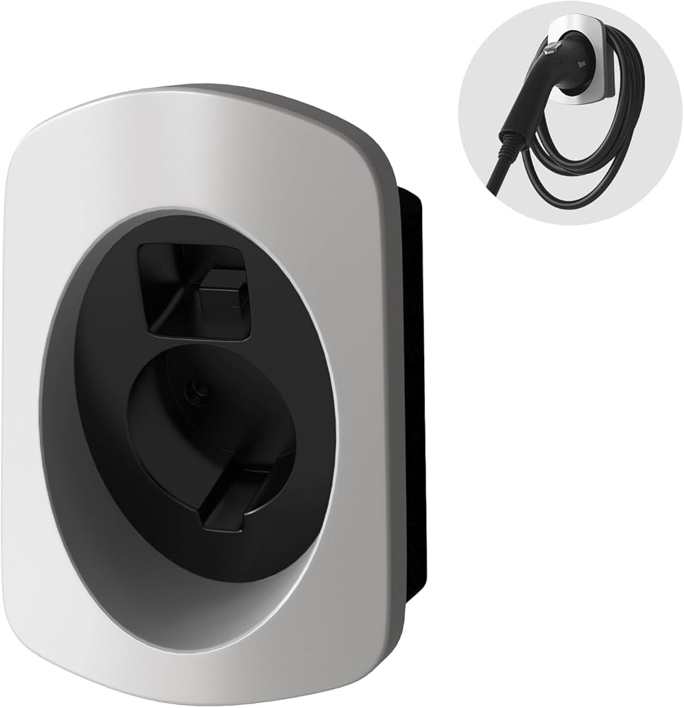 حامل شاحن Tera EV لشاحن SAE J1772، مادة شديدة التحمل، موصل تثبيت على الحائط للسيارة الكهربائية، منظم كابل الشحن، محطة شحن السيارة الكهربائية، ملحقات السيارة C01 فضي