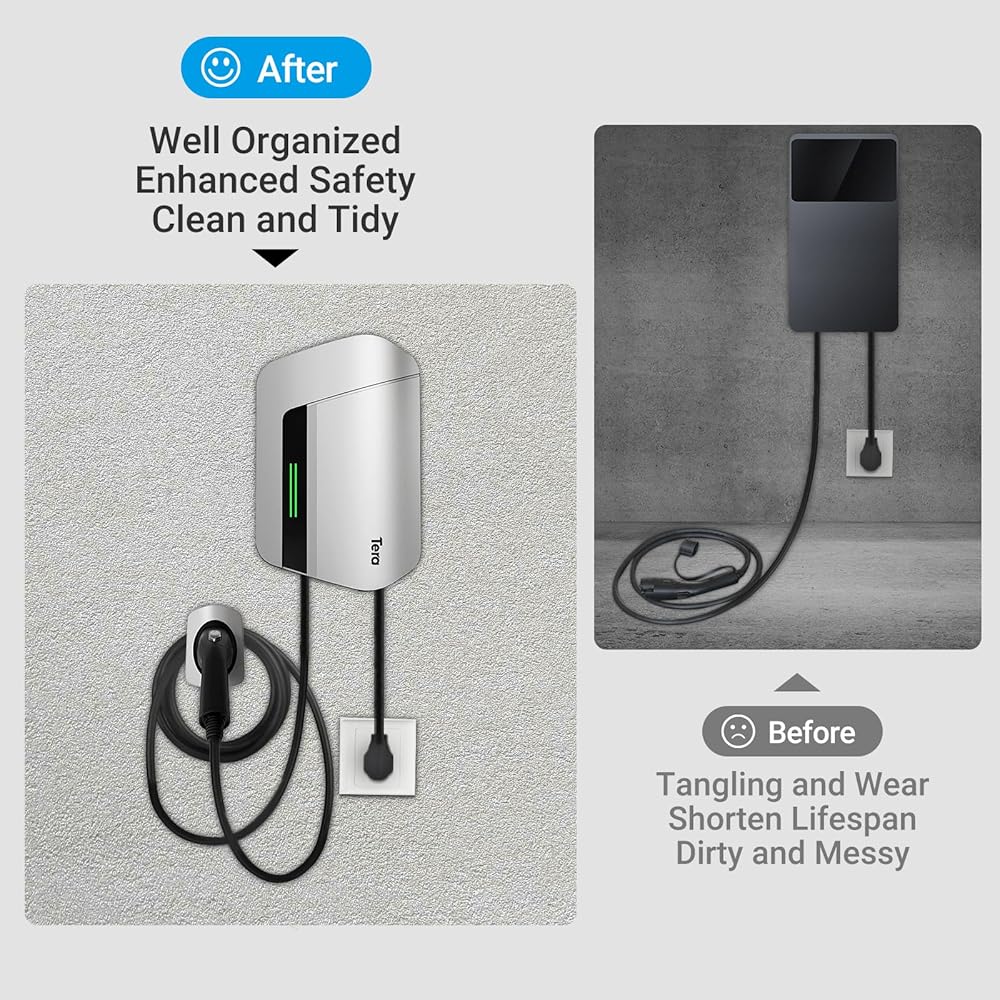 • 【توافق واسع مع J1772】تم تصميم حامل شاحن Tera EV ليناسب شواحن السيارات الكهربائية J1772، مما يوفر حلاً مريحًا وآمنًا لرسو السفن لسيارتك.