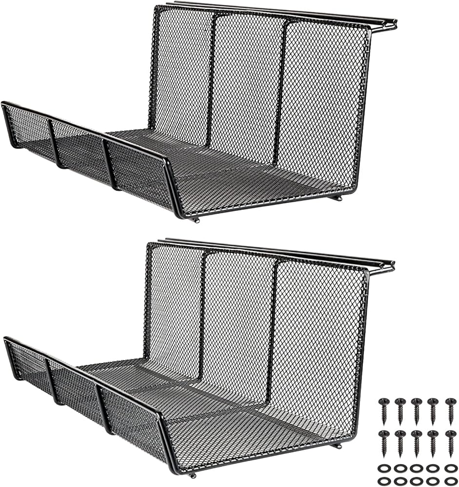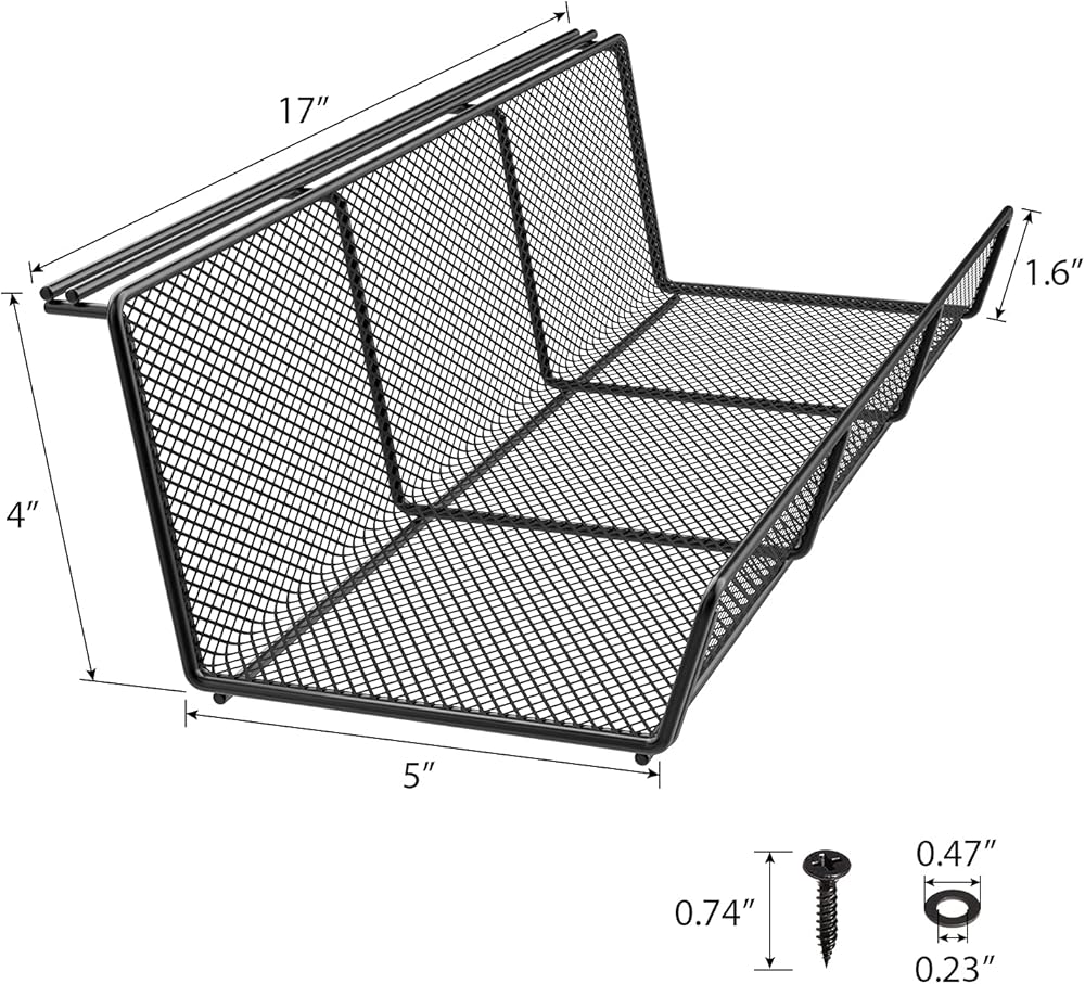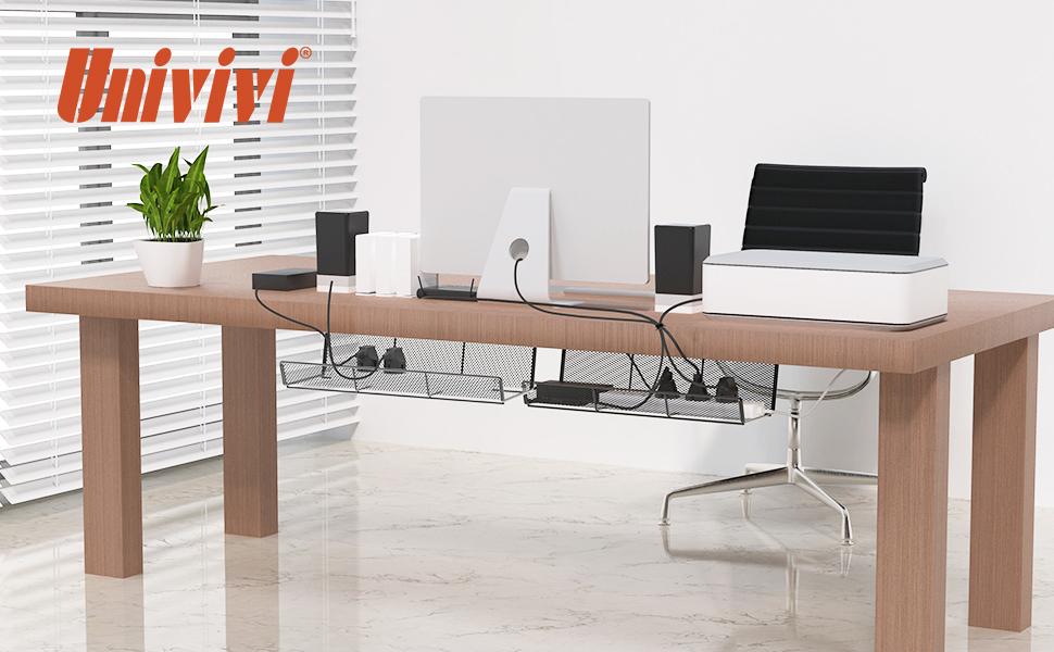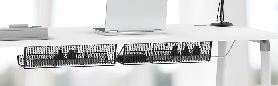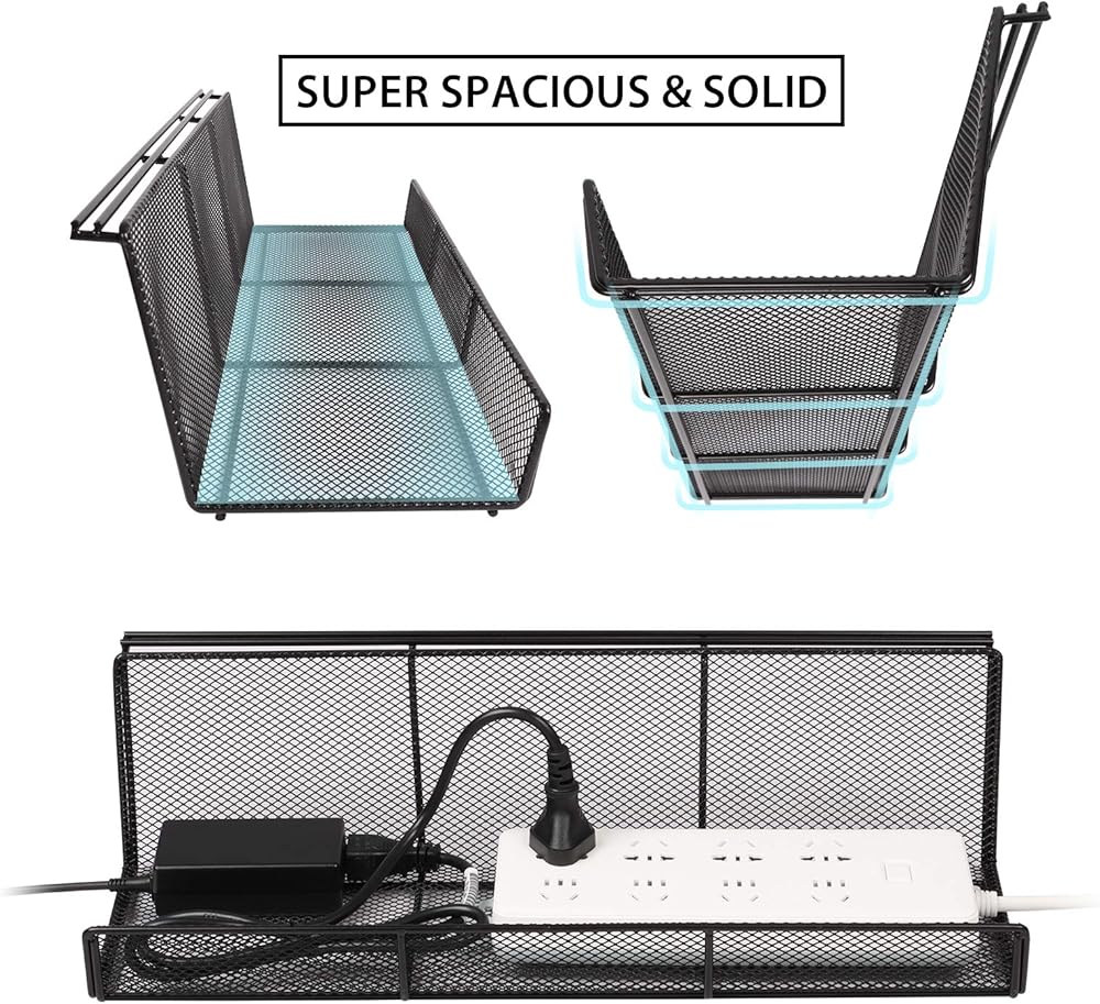 Univivi 17 بوصة منظم الأسلاك تحت المكتب، شبكة معدنية تحت المكتب صينية إدارة الكابلات، منظم الأسلاك تحت المكتب، منظمات سلك المكتب الدائمة للمكتب والمنزل، عبوة من قطعتين باللون الأسود