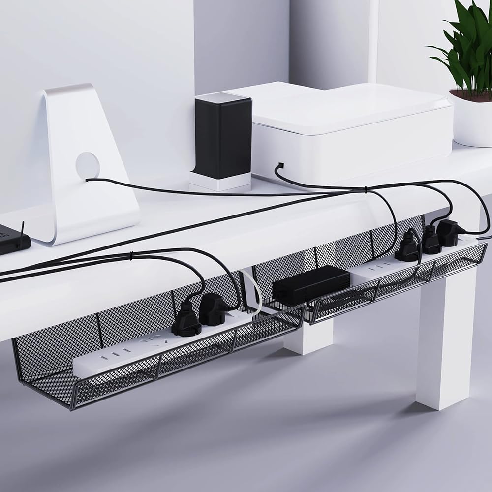 سهلة لإدارة الكابلات: يبلغ حجم كل صينية إدارة الكابلات 43.18 سم طولًا × 12.7 سم عرضًا × 10.16 سم عمقًا، وتتميز بسعة كبيرة ويمكن تخزين عشرات الكابلات والمقابس في حالة مرتبة وأنيقة. الحفاظ على أسلاك الكمبيوتر والمكتب لم تعد فوضوية ومريحة في المكتب.