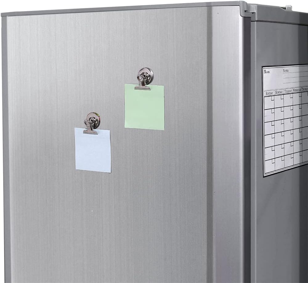 Super strength magnets are strong enough to hold 25 sheets of A4 paper at once, which won't slide down easily on metallic surface.