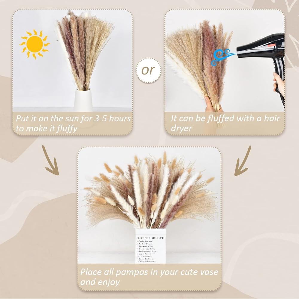 👍 【بدون صيانة】: من السهل أن ينتفخ عشب البامبا الجاف الخاص بنا. بمجرد أن يصبح بالشكل الذي تريده، يمكنك وضعه في مزهرية والاستمتاع بالأجواء الزخرفية التي يوفرها لمنزلك أو مكتبك. ليست هناك حاجة للري.