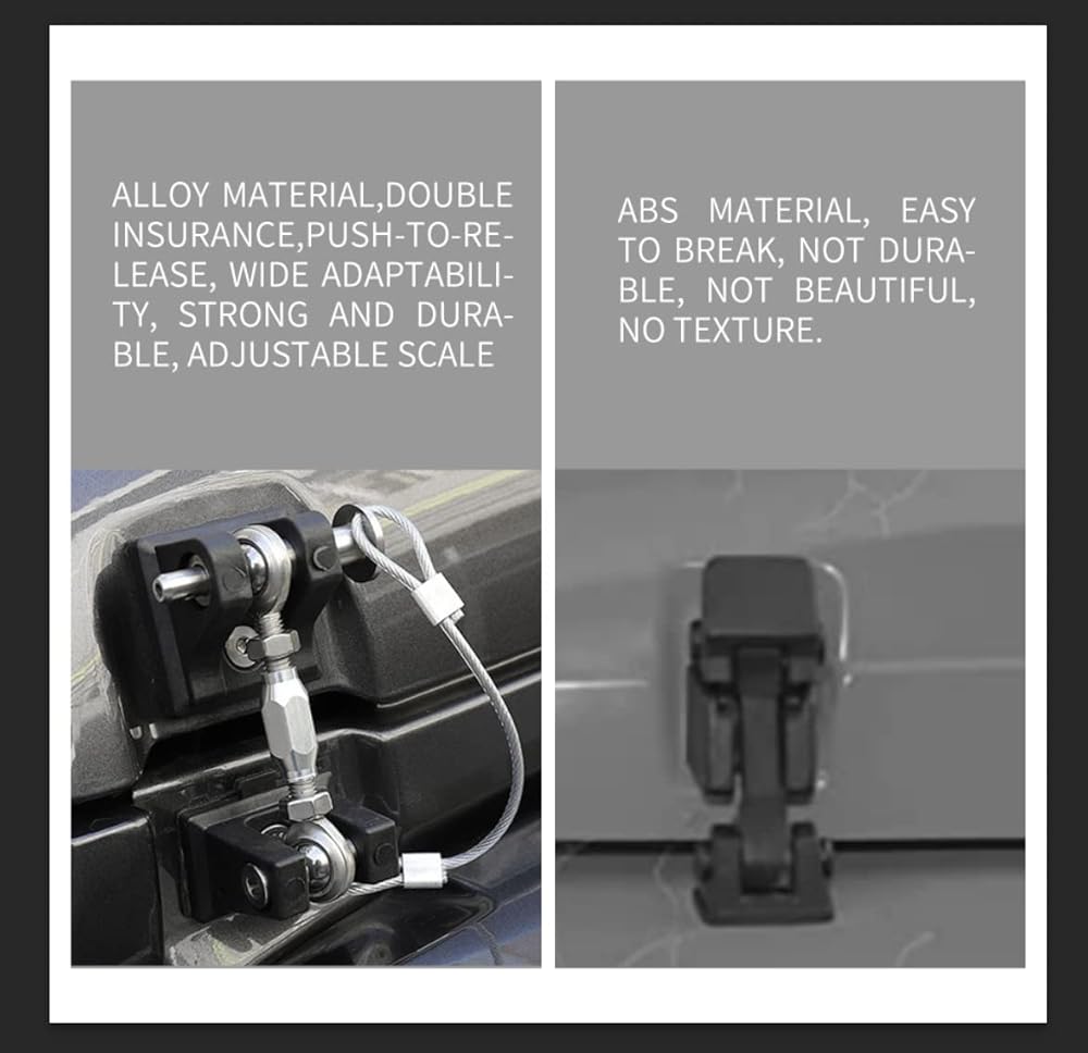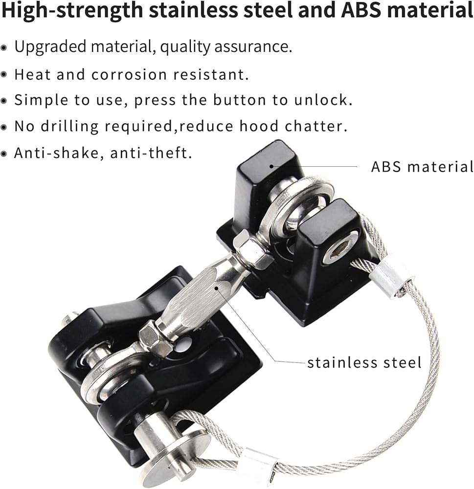 • مادة راقية: ملحق قفل القلنسوة هذا مصنوع من الفولاذ المقاوم للصدأ المطلي بالكهرباء ومادة سبائك الألومنيوم، والتي تتميز بمقاومة ممتازة للحرارة، ومقاومة التآكل ومقاومة التآكل. يدعم التشغيل في البيئات القاسية. والمظهر بسيط وعصري. سهل التنظيف للغاية.