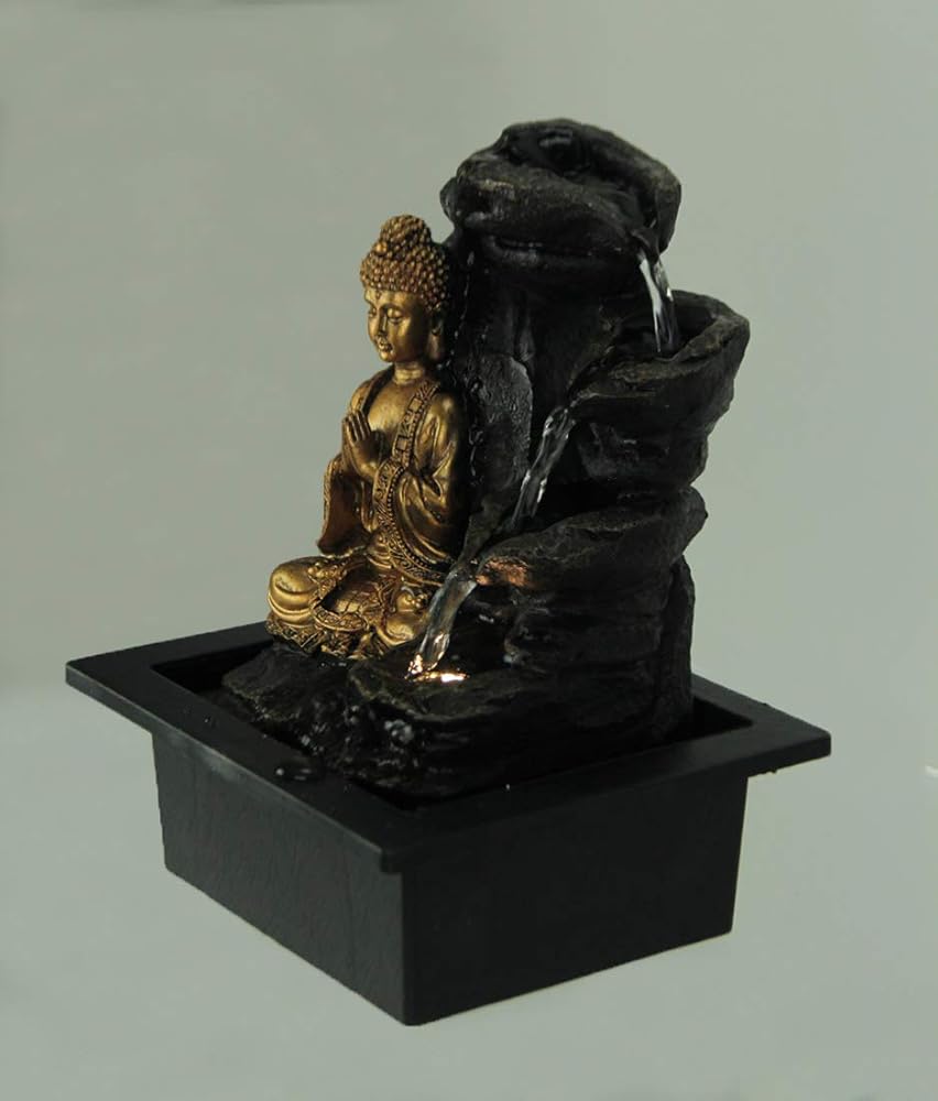 Golden Buddha FountainMade from resin10 inches tall and 8 inches wideComes with an electric pump.