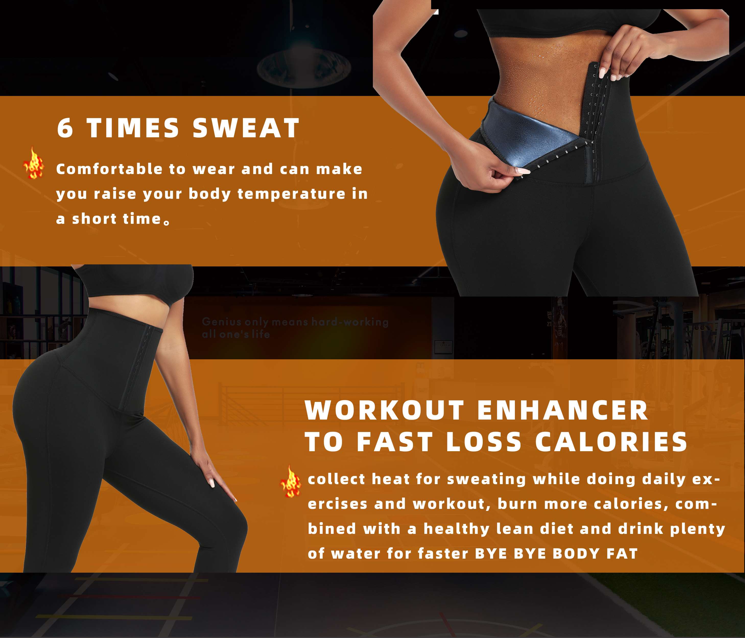 • UPGRADED SWEAT HEAT TRAPPING FABRIC FOR WOMEN:Our sauna waist trainer leggings made of polymer heat-trapping material which can make you raise your body temperature in a leggings time.quickly form heat reflection and heat circulation, make you sweat crazily.
