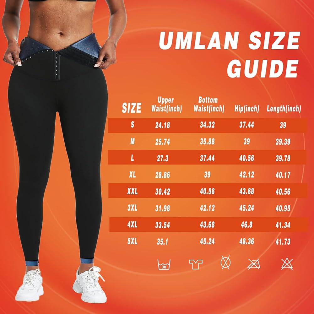 • NO ROLL DOWN DESIGN&HIGH COMPRESSION: The themo sweat leggings is with rubber on waist top .the thigh slimmer can hold on your waist and no roll down if you have bigger belly fat .The high waist sauna leggingss for women can help you to tummy control your waistline.