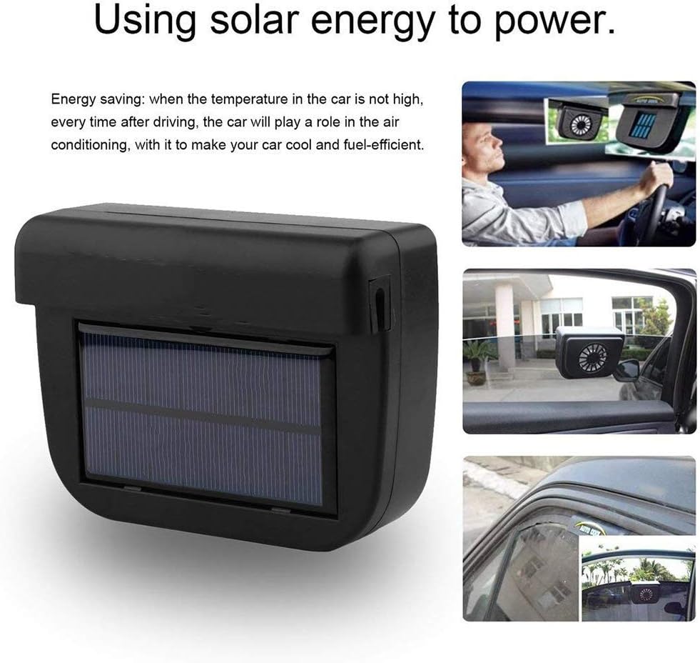 Product Features 1. Cool down and effectively reduce the temperature inside the car. 2. Detoxification: Excessive temperature will release 20 times of toluene (toluene toxicity can cause miscarriage in pregnant women and blood cancer in children) 3. Deodorization: Exhaust the smell of the car and keep the air inside the car fresh. 4. Cooling: There is no feeling of sultry when entering the car for the first time. 5. Health: Air convection is good for you and your family to enjoy a nontoxic and harmless ride environment. 6. Protection of electrical appliances: Electrical and electronic equipment in vehicles can affect their performance and service life due to high temperatures. 7. Energy saving: When the temperature inside the car is not high, the air conditioning effect will be effective after each driving, which will cool the vehicle and save fuel. Product parameters Product Name: Car exhaust fan Power mode: solar energy Wind selection: natural wind Product size: 15 x 11 x 6CM Product material: ABS Product color: black Packaging parameters 1 x car solar cooler 1 x sealed bag