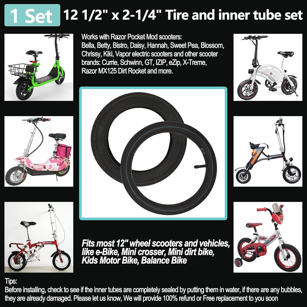 12.5x2.25 Tire and tube Compatible with Razor Pocket Mod scooters: Razor Sport Mod, Bella, Betty, Bistro, Daisy, Hannah, Sweet Pea, Blossom, Chrissy, Kiki, Vapor, Hannah Montana.