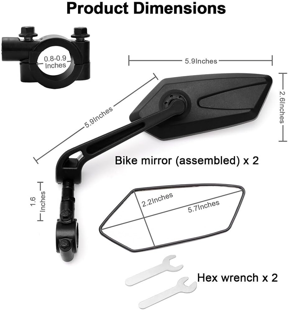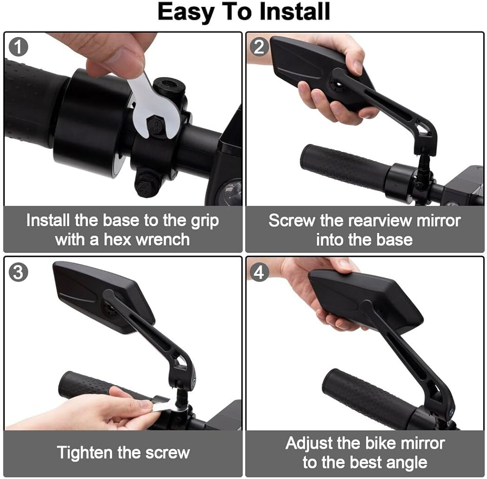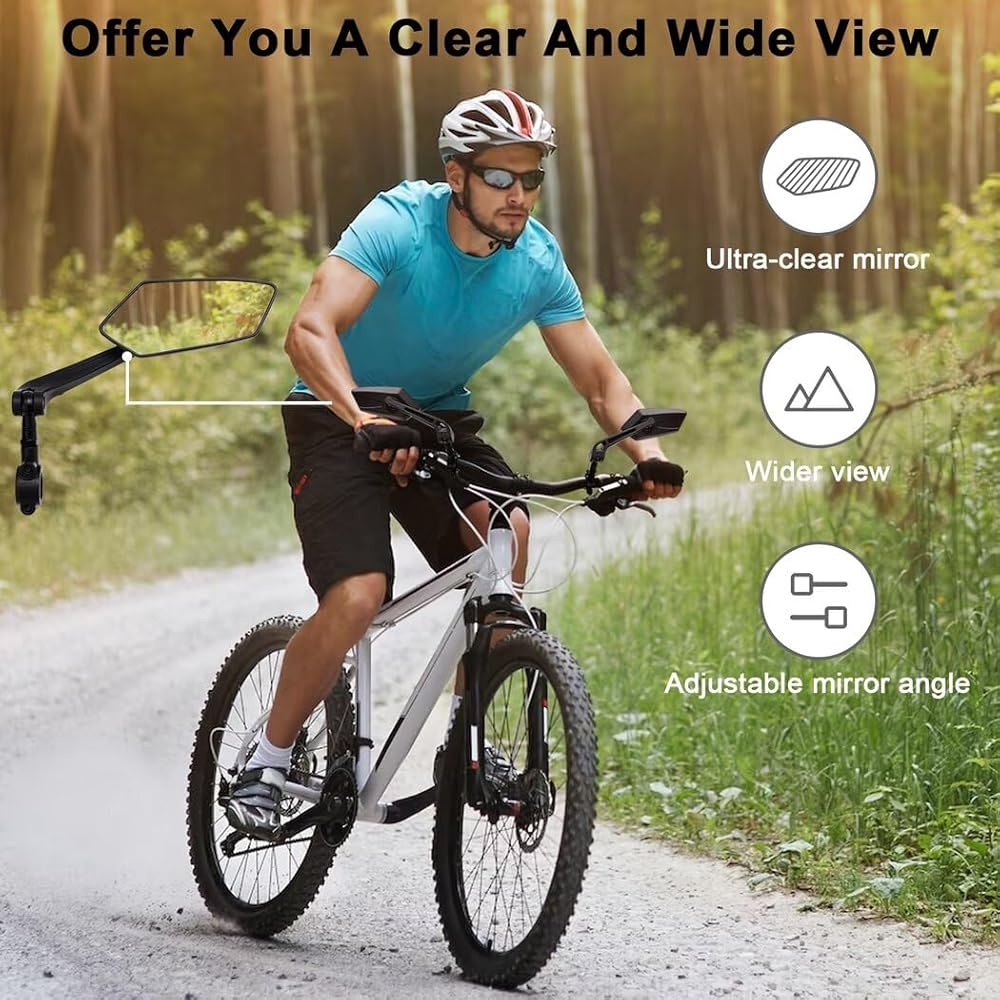 【رؤية واضحة لتعزيز السلامة】تتميز مرايا الرؤية الخلفية للدراجة لدينا بأسطح زجاجية عالية الوضوح تقدم صورة حقيقية وغير مشوهة. إنها توفر لك رؤية خلفية واسعة وواضحة، مما يسمح لك بفهم أفضل للوضع خلفك وجعل تجربة ركوب الدراجات الخاصة بك أكثر أمانًا.