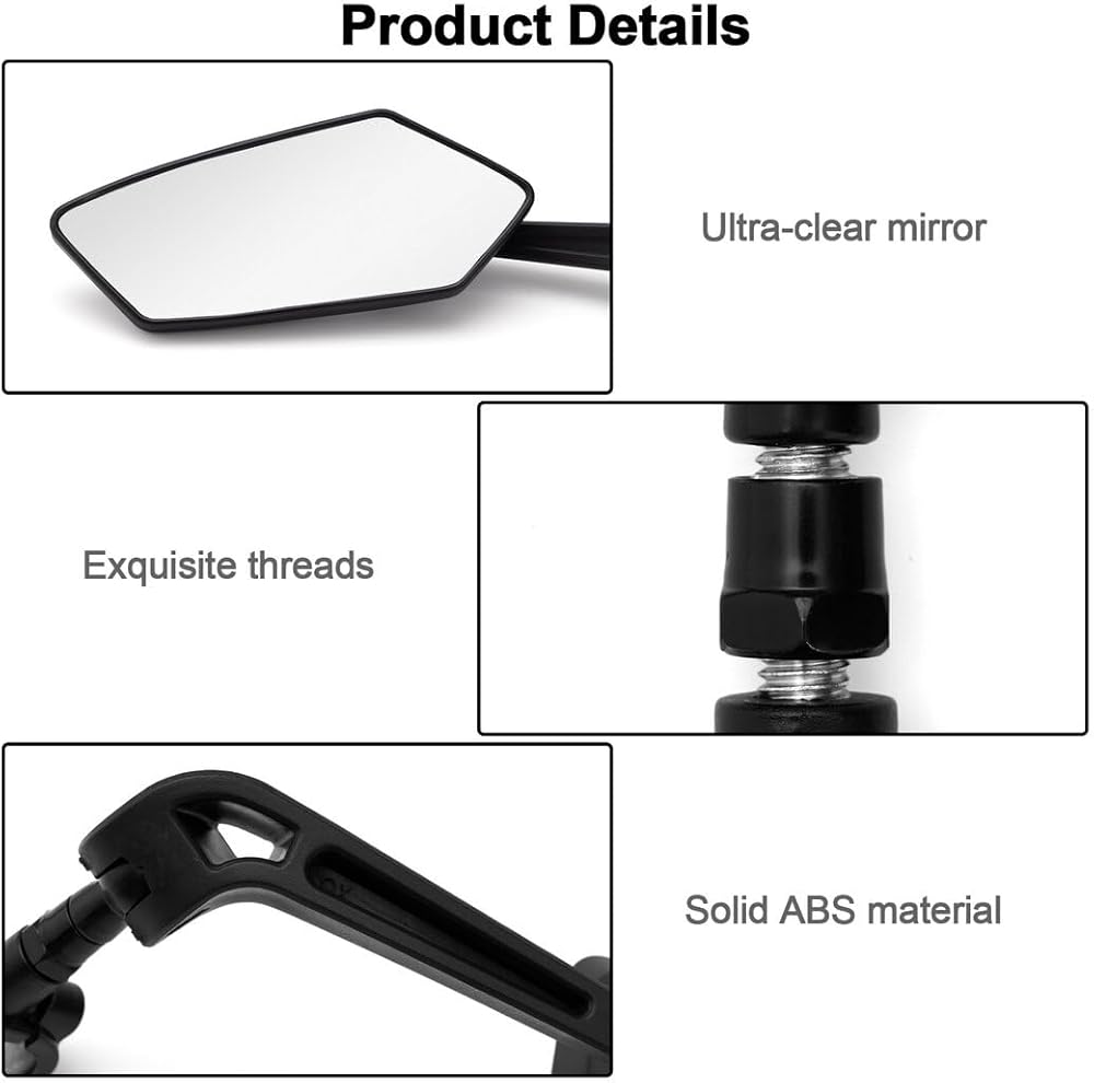 【هيكل متين مع ثبات رائع】مرايا الرؤية الخلفية للدراجة الخاصة بنا مصنوعة من مادة أكريلونتريل بوتادين ستايرين عالية القوة وقواعد المرآة مصنوعة من سبائك الألومنيوم عالية الصلابة، مما يضمن متانة ومتانة رائعتين. تساهم الوصلات الضيقة عند المفاصل في تكوين هيكل مستقر، مما يمنع أي اهتزاز غير مرغوب فيه أثناء رحلتك.
