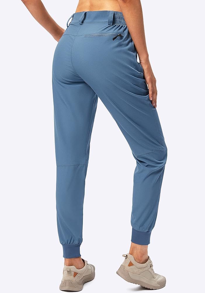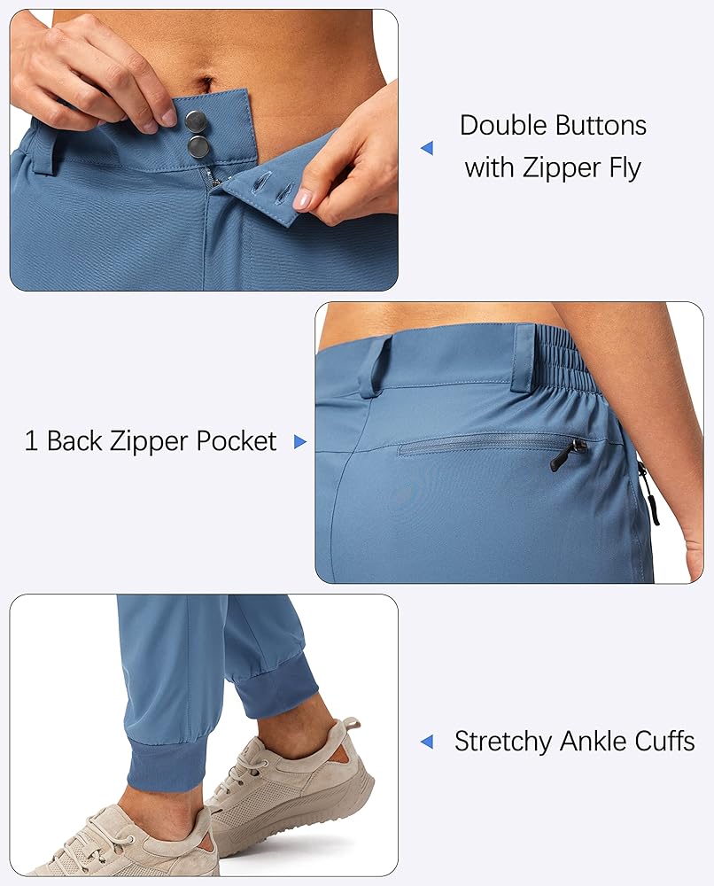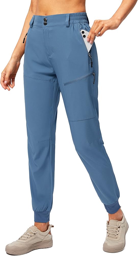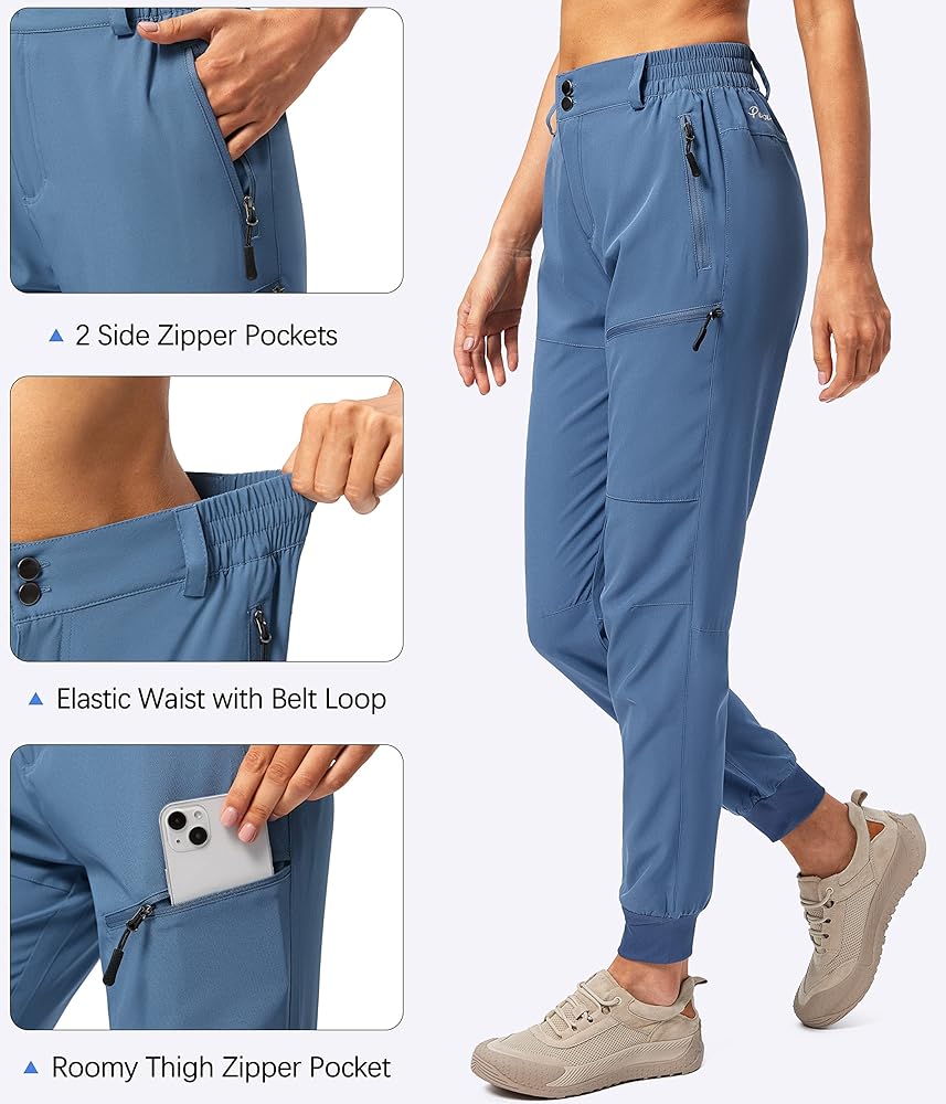 سراويل Pudolla النسائية خفيفة الوزن للمشي لمسافات طويلة ومقاومة للماء للسفر والتخييم والمشي مع جيوب بسحاب (أزرق داكن متوسط)