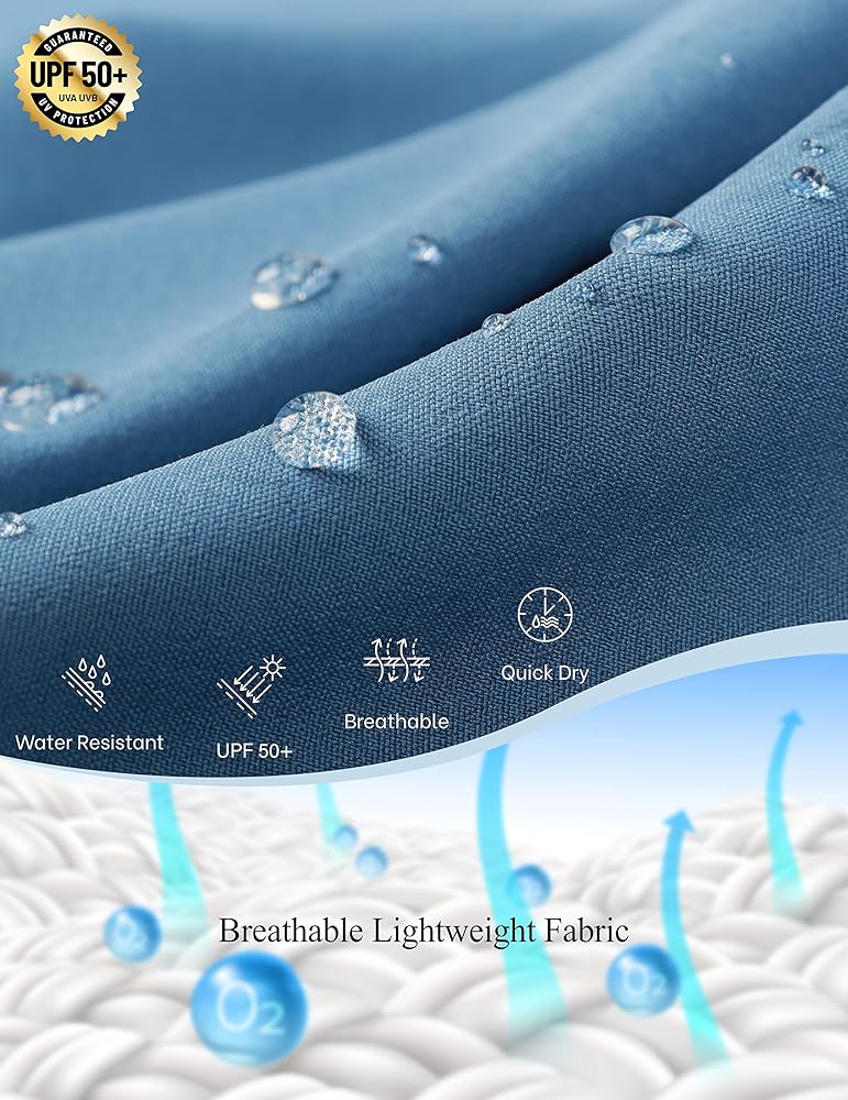 • مقاوم للماء وعامل حماية من الأشعة فوق البنفسجية 50+: معالجة طاردة للماء عالية الأداء، تساعد على طرد المطر الخفيف والبقع. حماية UPF50+، ضد حروق الشمس لبشرتك.