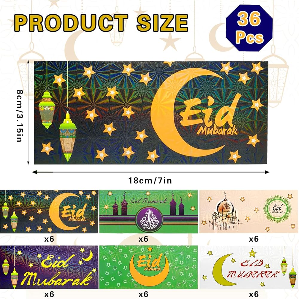 36 x Eid Mubarak Money Envelopes
