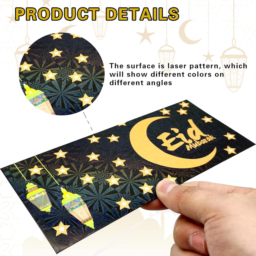 Classic design: these Ramadan cash envelopes are designed with many classic elements, such as moon, star, mosque, and lantern and with the words "Eid Mubarak", beautiful and meaningful, supplying the nice backdrop for your generous gifts.