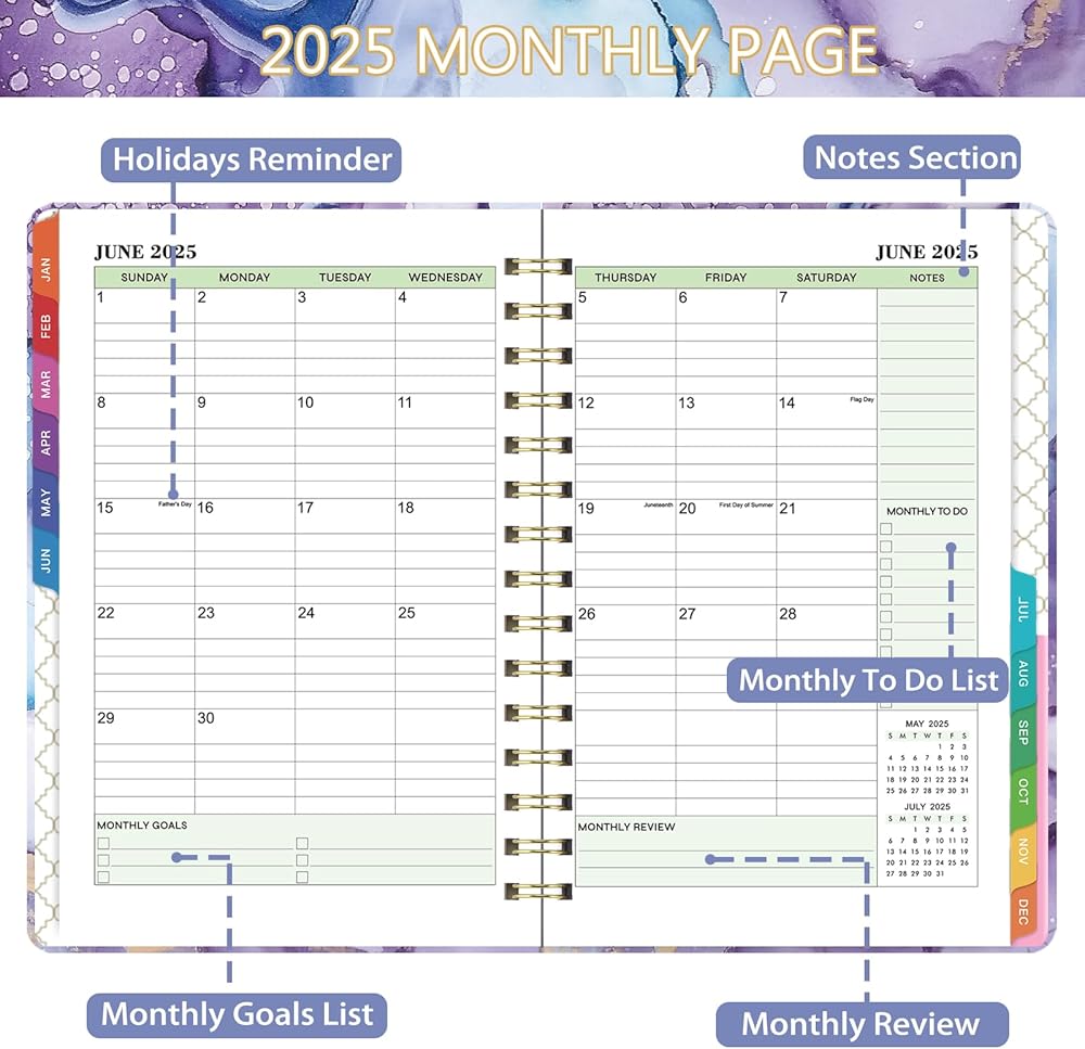 🔮 مخطط 2024-2025 - تواريخ مخطط 2024-2025 هي يوليو 2024 حتى يونيو 2025 مع صفحات أسبوعية وشهرية. يأتي مع فواصل مبوبة لمدة 12 شهرًا للمساعدة في التتبع على مدار العام والوصول السريع. الحجم المحمول 6.4 بوصة × 8.5 بوصة مثالي للتخطيط اليومي.