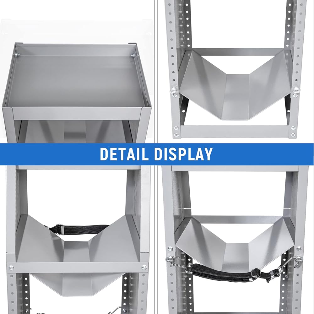 This refrigerant tank holder made of heavy-duty carbon steel, which is corrosion and rust resistance and ware-proof. 3-tier welded steel tank towers equipped with 3 x 30lb and storage space can prevent sliding efficiently.