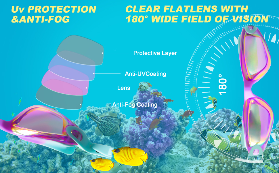 • 【حماية ضد الضباب والأشعة فوق البنفسجية】 تم تصميم نظارات السباحة ريورو بطبقة مبتكرة مضادة للضباب على سطح العدسة على السطح الداخلي. الأسطح الخارجية تغطي العدسات بحماية من الأشعة فوق البنفسجية والتي يمكن أن تحمي أعينهم من مياه حمام السباحة وأشعة الشمس والأضواء الساطعة الضارة. سيحب الأطفال هذه النظارات ويثقون بها.