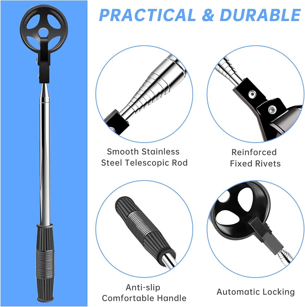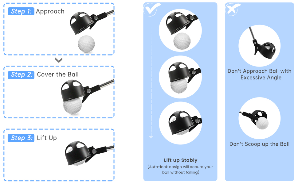 【مغرفة قفل تلقائية】جهاز استرداد كرة الجولف هذا سهل الاستخدام بنقرة بسيطة أو مغرفة، وسيتم التقاط الكرة بأمان. سواء كنت لاعبًا جديدًا أو لاعب جولف ذو خبرة، يمكنك بسهولة استخدام جهاز جولف ريتريفر لالتقاط كرات الجولف. التصميم القابل للسحب يسمح لك بالتقاط الكرة دون الانحناء، مما لا يوفر طاقتك ووقتك فحسب، بل يحمي خصرك أيضًا.