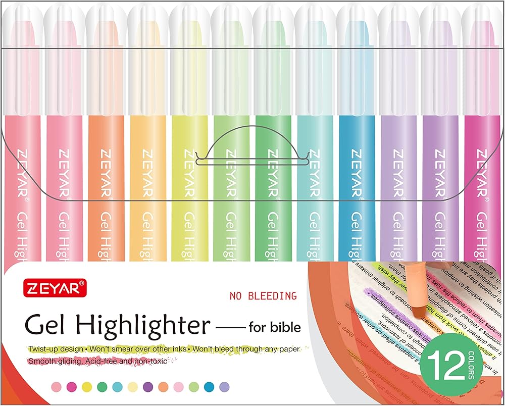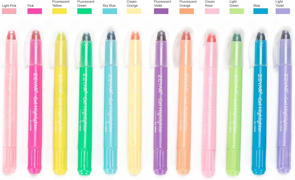 • الولايات المتحدة الأمريكية العلامة التجارية ZEYAR. أقلام هايلايتر من BIBLE SFAE: هذه الأقلام التي لا تنزف تعتبر رائعة لتدوين وحفظ الآيات، ولن تتلاشى أو تتلطخ فوق الأحبار الأخرى.