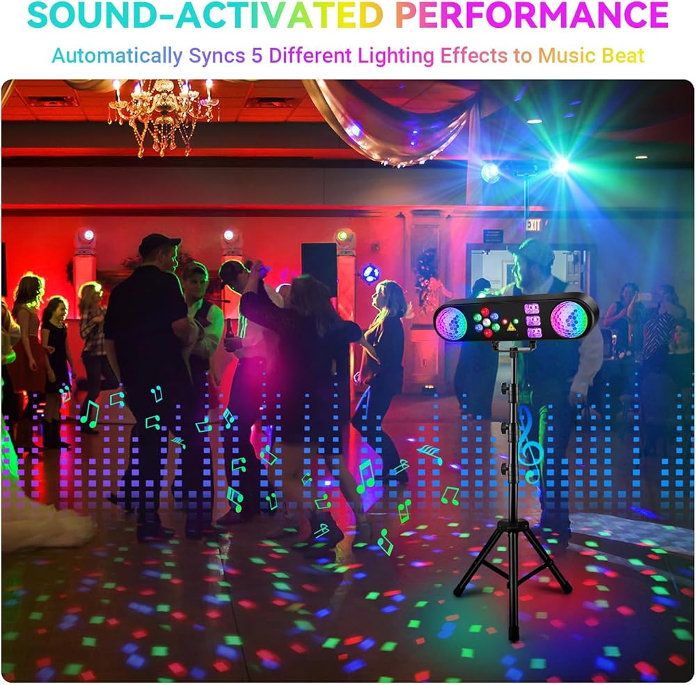 أضواء حفلات DJ مع حامل: نظام شريط إضاءة كامل 5 في 1 - كرة ديسكو منشطة بالصوت بالأشعة فوق البنفسجية وإضاءة سوداء ستروب LED وأضواء نمطية - حامل ثلاثي القوائم لحفلات المنزل وإضاءة دي جي المتنقلة لعيد الميلاد