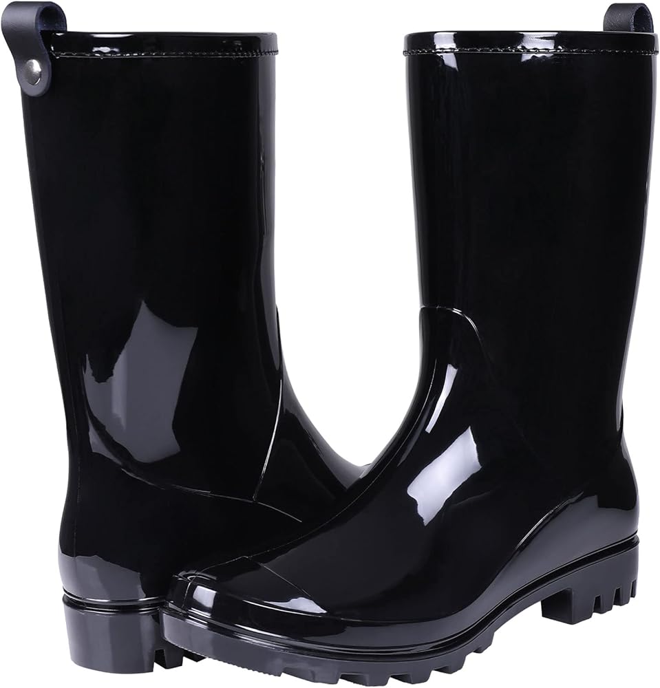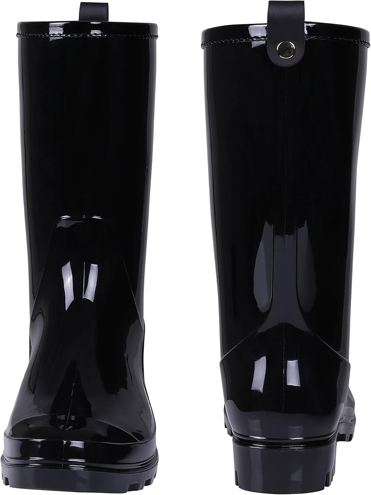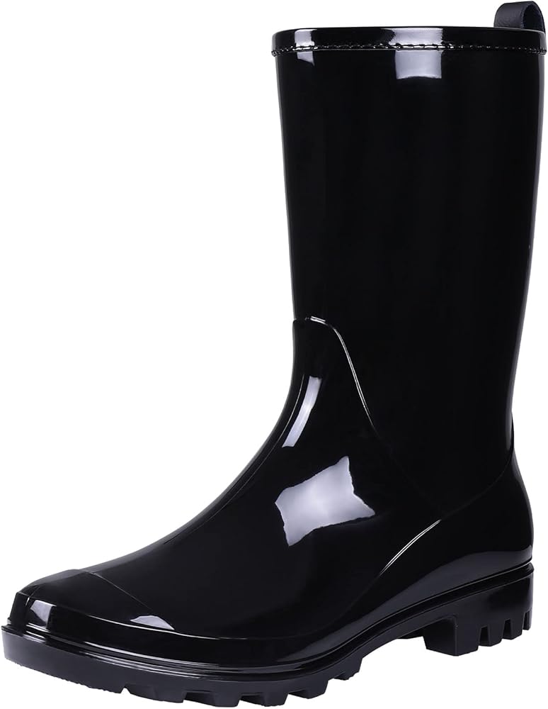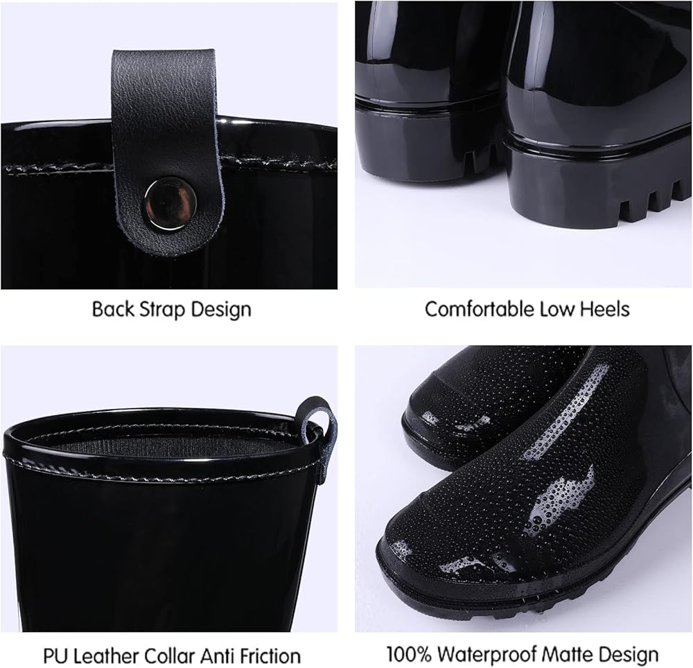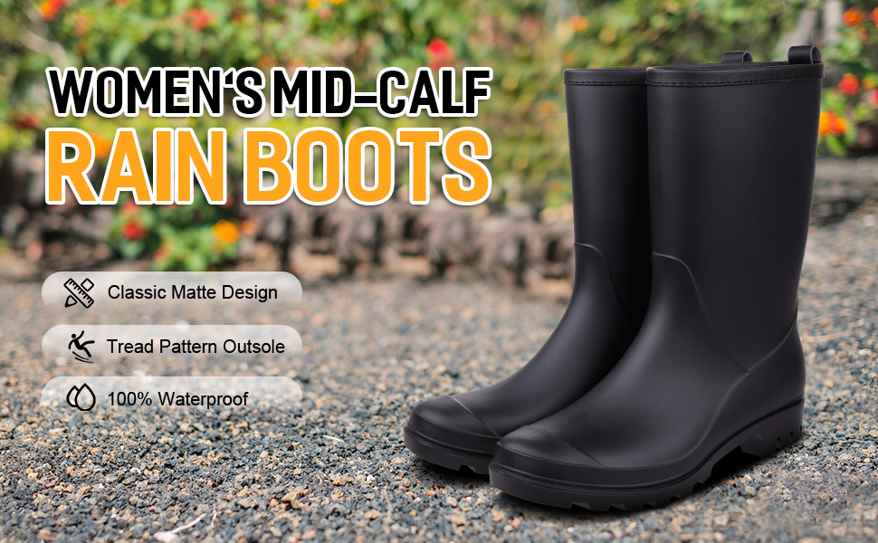 【أحذية مطر لمنتصف الساق】تتميز بأحذية مطر ذات هيكل غير لامع بارتفاع منتصف الساق، وياقة من الجلد الصناعي حول فتحة الحذاء لمنع الاحتكاك. تتميز أحذية المطر ذات التصميم البسيط بأنها خفيفة الوزن وأنيقة، والتي يمكن أن تبقي قدميك جافة ودافئة في الأيام الممطرة أو أثناء العمل في الحديقة.