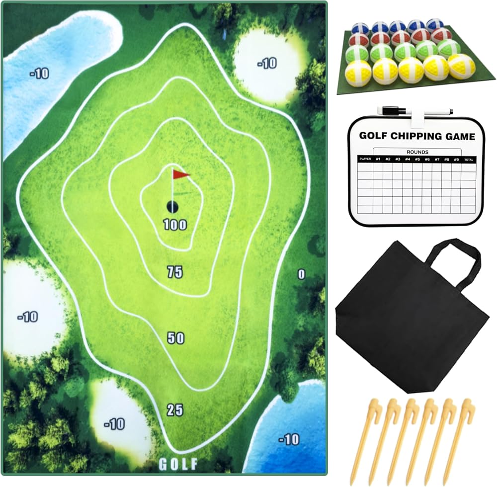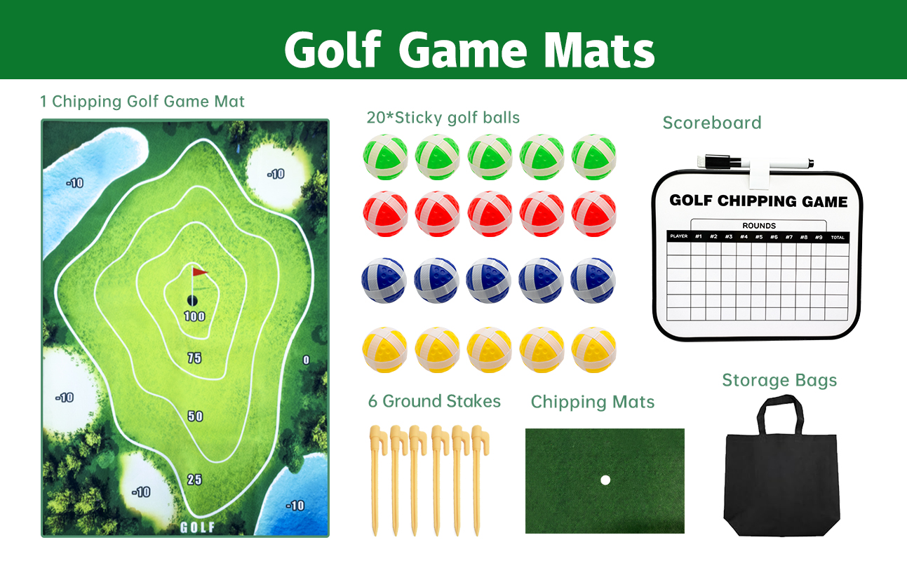 مجموعة ألعاب الجولف تشيبينج حصيرة الجولف، 20 كرة جولف لزجة، بساط تدريب الجولف في الأماكن المغلقة والخارجية، سجادات ممارسة ألعاب الجولف للبالغين والأطفال