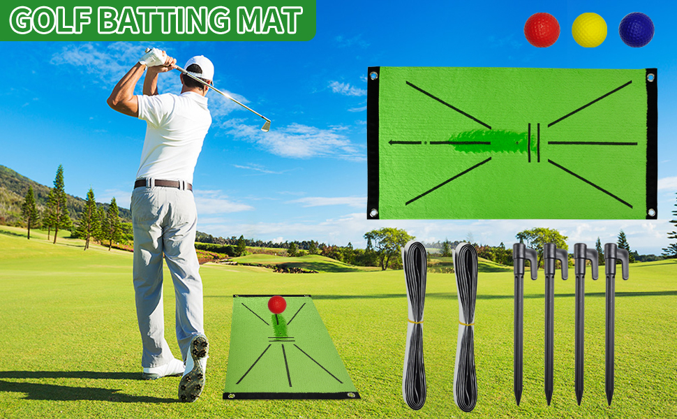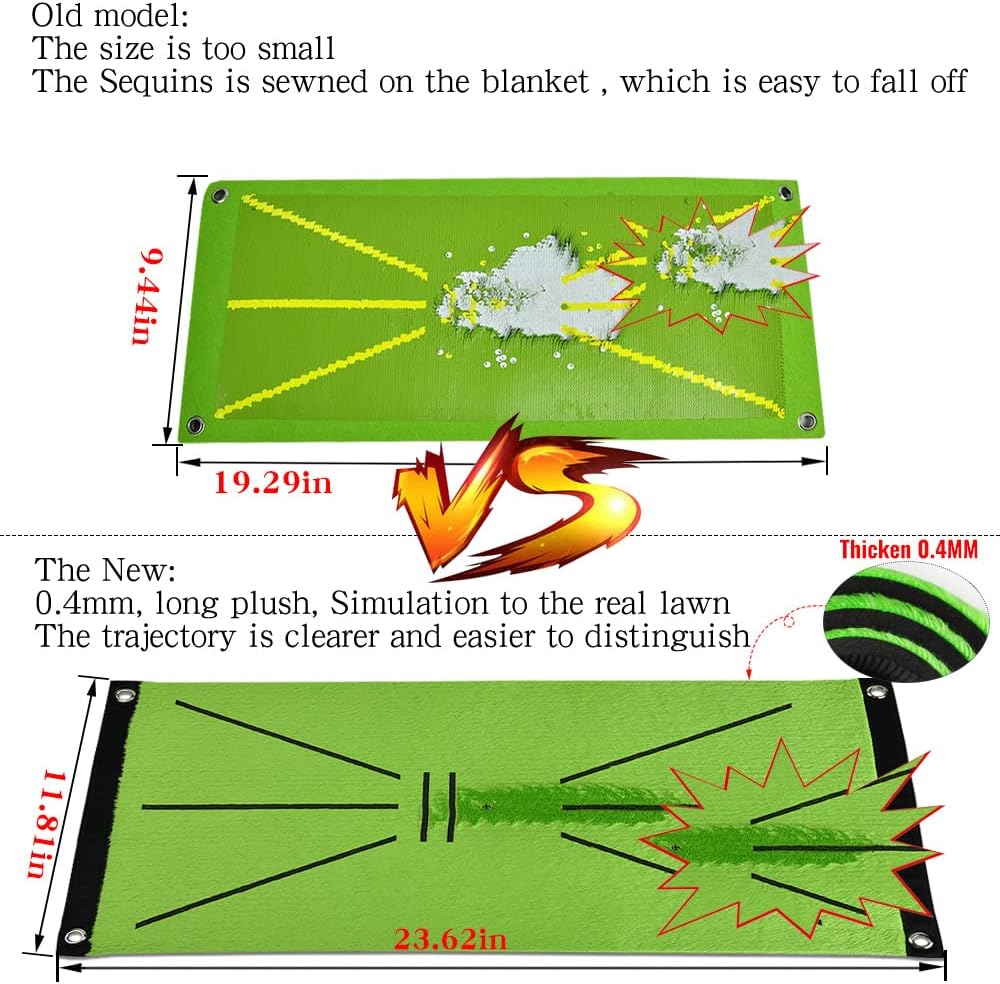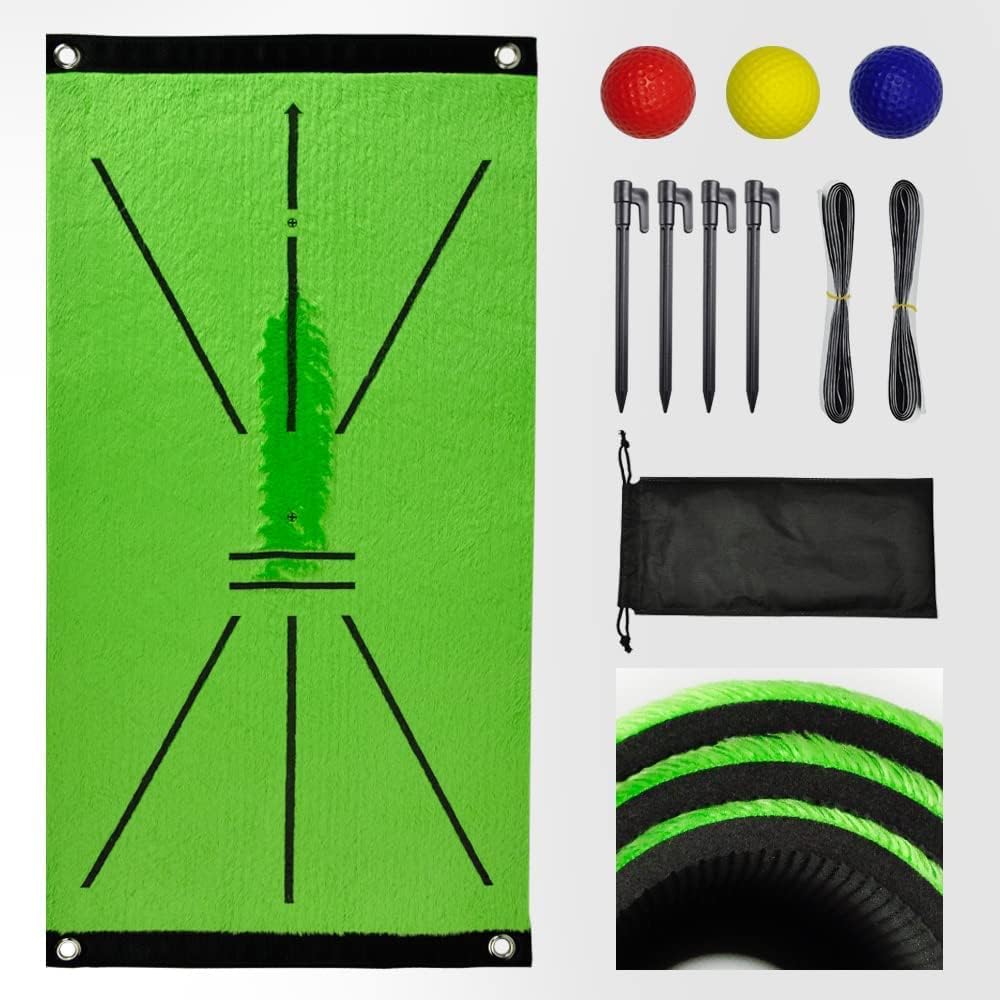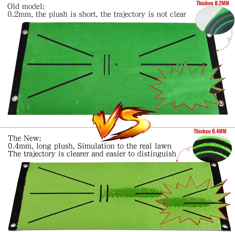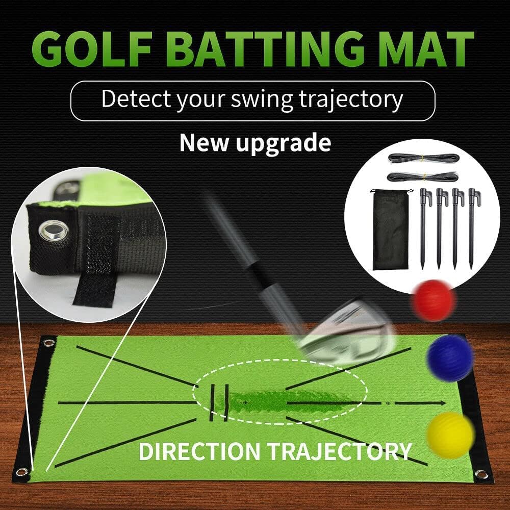 بساط ضرب الجولف، بساط تدريب الجولف، ضرب كشف التأرجح، تحليل وتصحيح مسار التأرجح، بساط جولف العشب مع قاعدة ناعمة مطاطية ماصة للصدمات مع 3 قطع من كرات تدريب الجولف في الداخل/الخارج