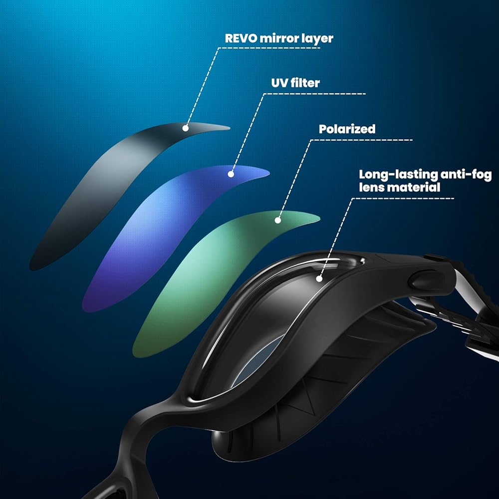 SUPERIOR ANTI-FOG LENS: TOBA anti-fog polarized swimming goggles use the latest composite technology to combine the anti-fog lens with the polarized lens. Superior Anti-Fog technology for 2x longer lasting vision. The anti-fog effect lasts for more than 3 years.