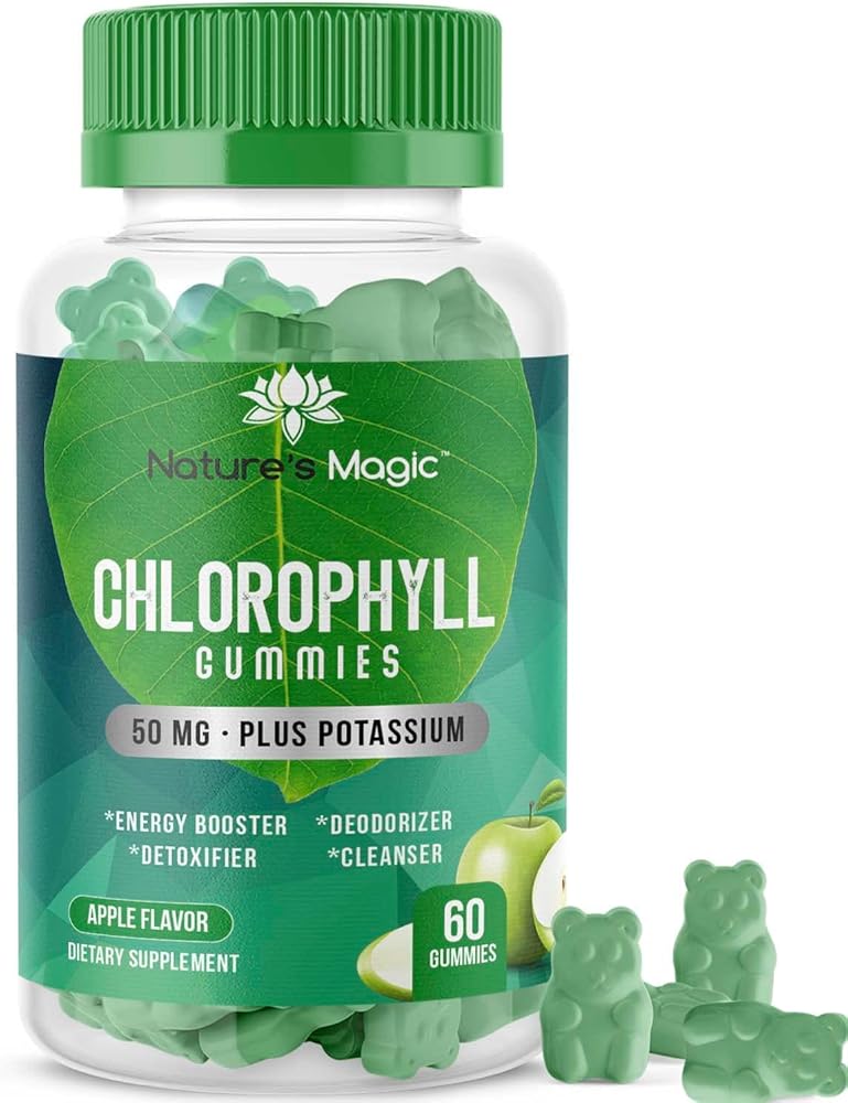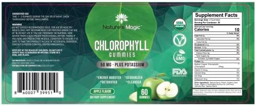 مزيل العرق الداخلي من Nature's Magic Chlorophyll Gummies، يدعم التخلص من سموم البشرة والجسم الصحي، 50 مجم بنكهة التفاح بالإضافة إلى البوتاسيوم، عضوي ونباتي...